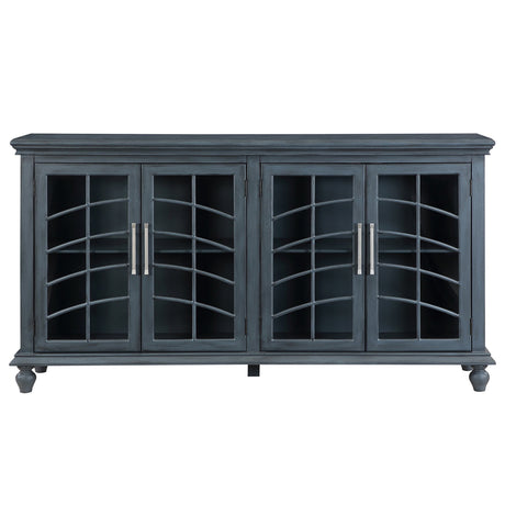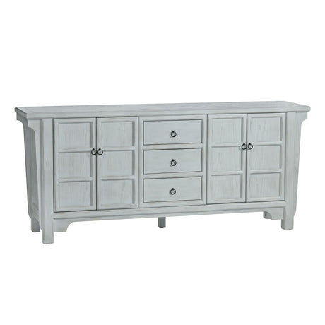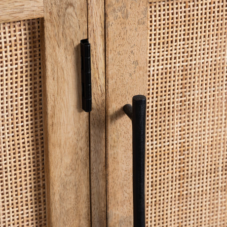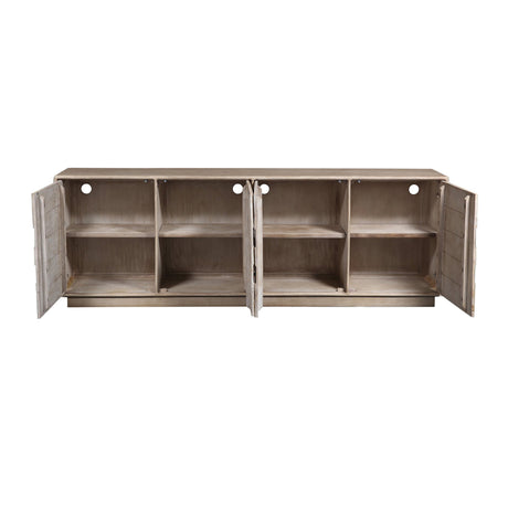 - Four doors featuring a wood strip design in a distressed lighter brown finish