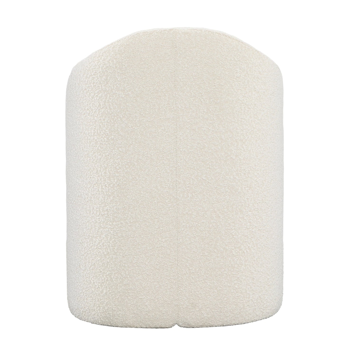 With its graceful silhouette and harmonious proportions, our Thora Dining chair exudes modern simplicity and minimalistic beauty. Featuring a curved back that flows into slender arms for an elegant embrace. high-performance boucle upholstery. Measuring 32.12' tall and 23.75' wide, it is the perfect companion for your dining table, instantly creating an inviting ambiance in your home.