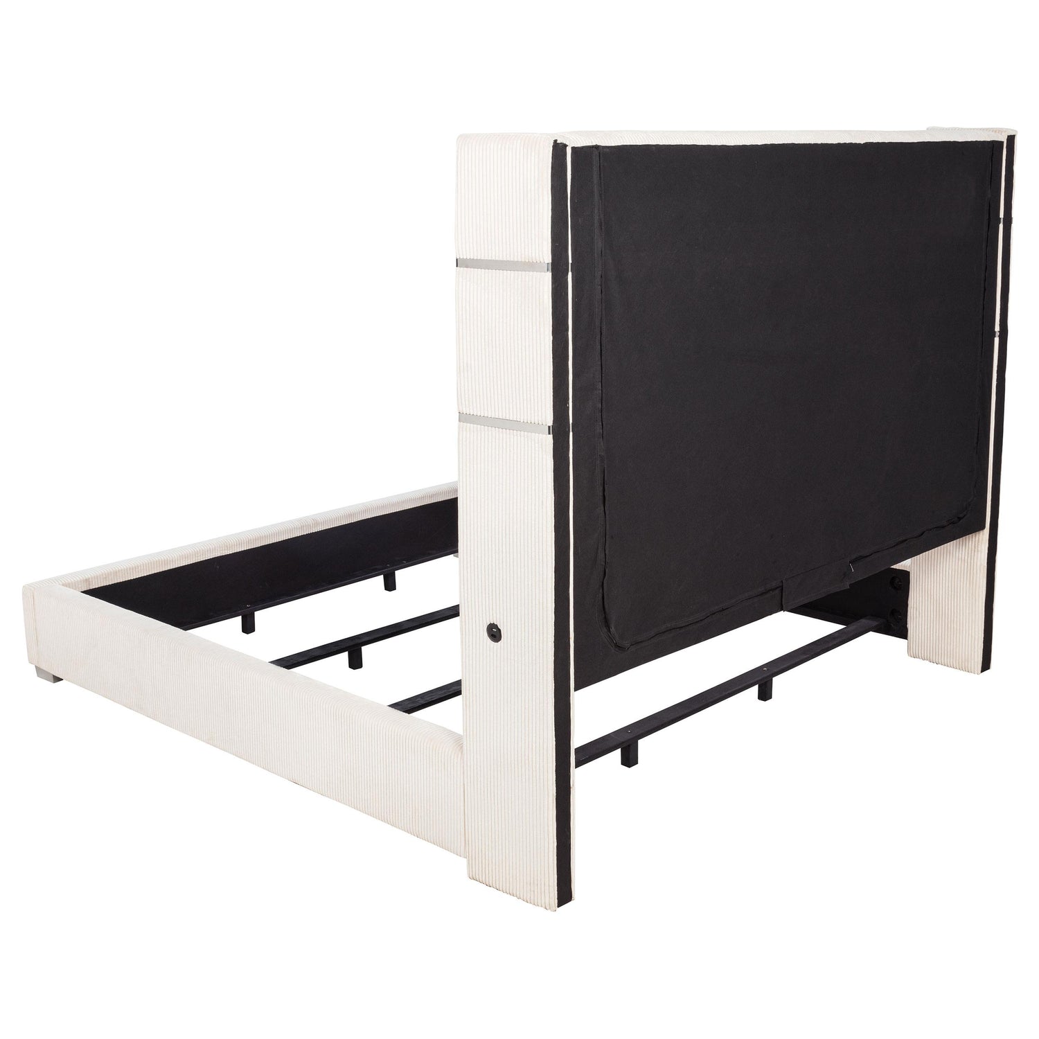- Item Name: Tisdall Cream Upholstered Eastern King Flame Visualizer Bed