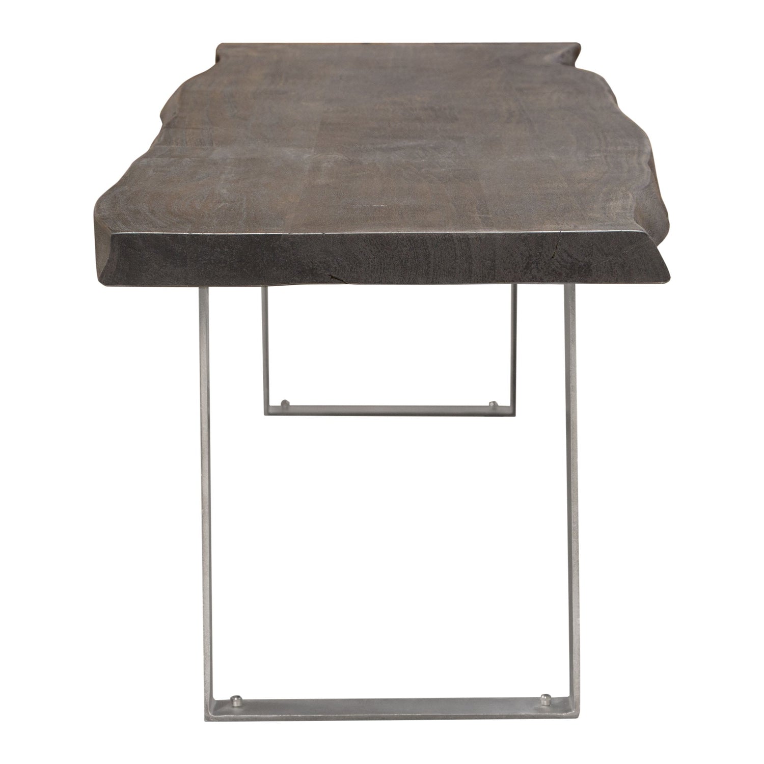 - Sophisticatedly contrasted with the Silver Metal Inlays & Iron base, your home's decor will not only be improved but rather transformed by the naturally undulating live edge design.