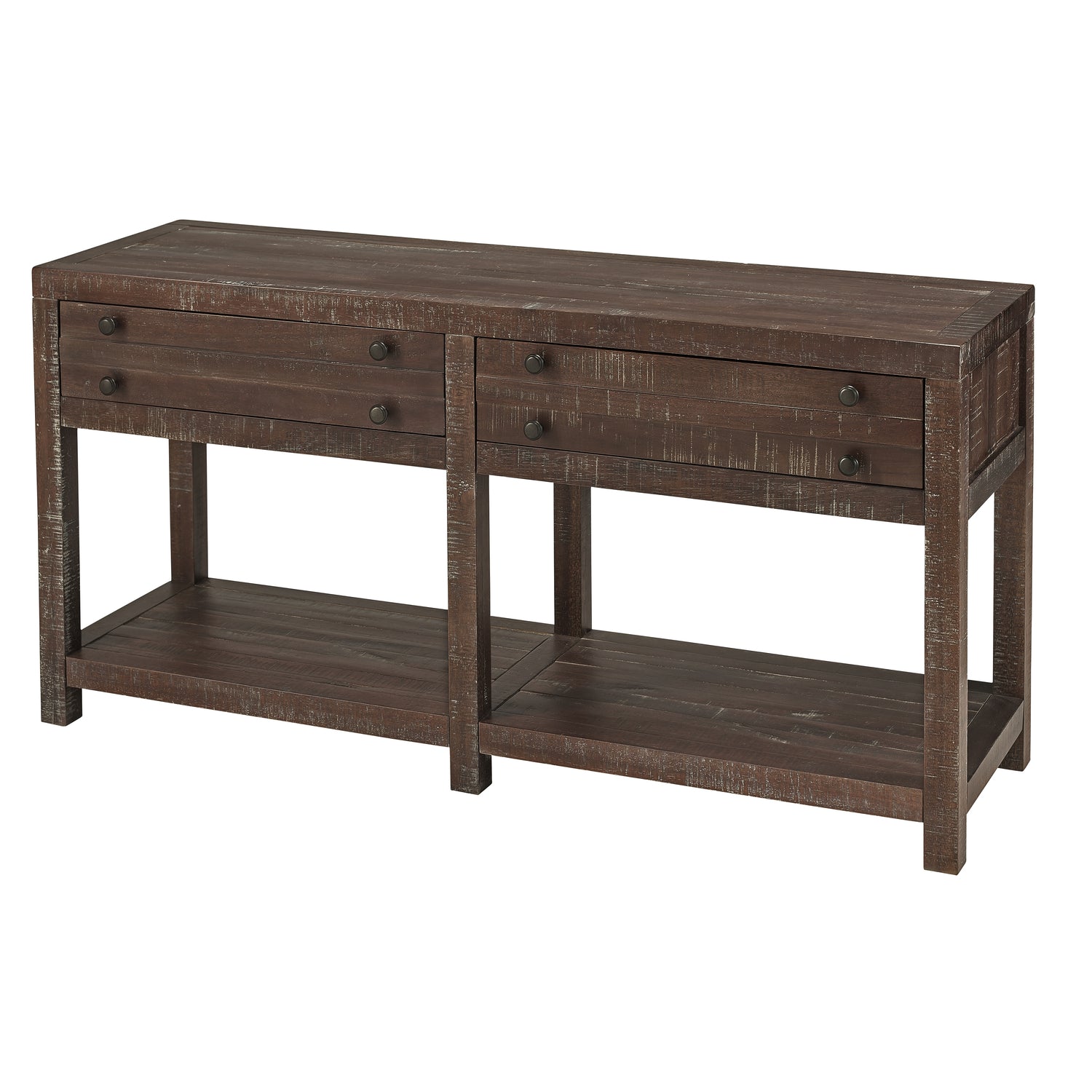 - Sofa Table is constructed with solid wood frame, front, top and side, plywood drawer boxes, engineered wood dust cover and back panel