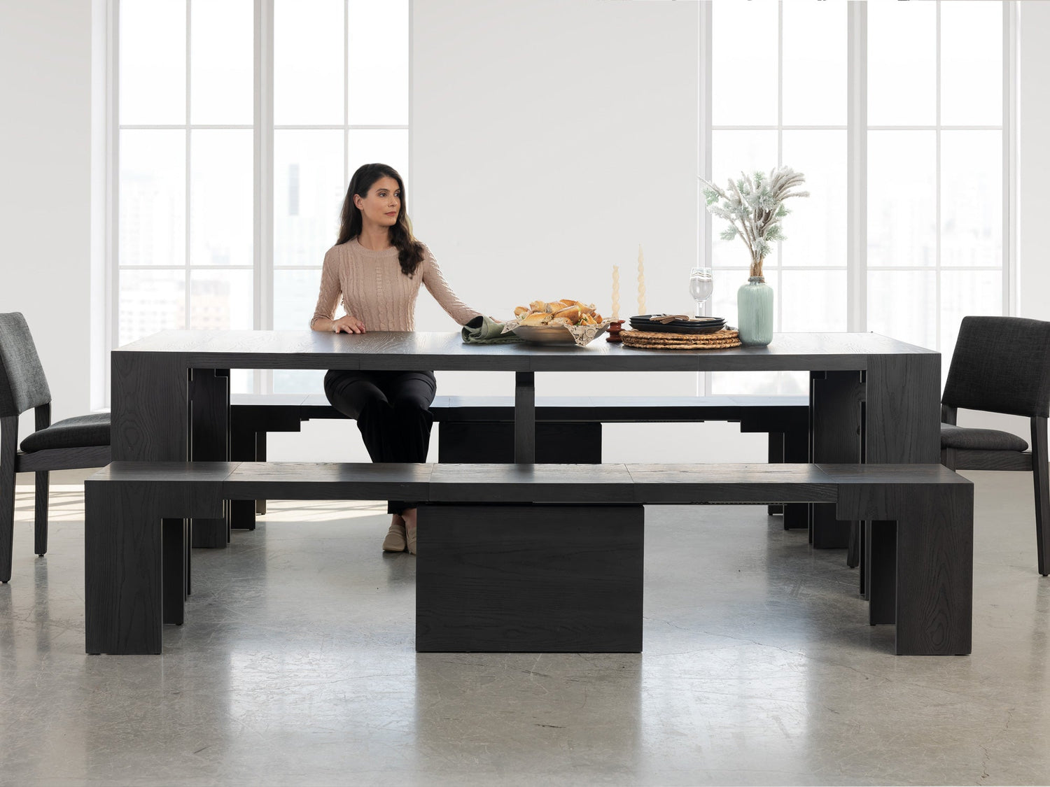 Transformer Dining Set - The Gathering transforms your dining area into an effortless social hub. Whether hosting lively dinners or intimate catch-ups, it adapts seamlessly to the size and energy of any occasion. Its refined aesthetic and fluid expandability make it a dependable centerpiece for homes where connection is at the heart of daily life.