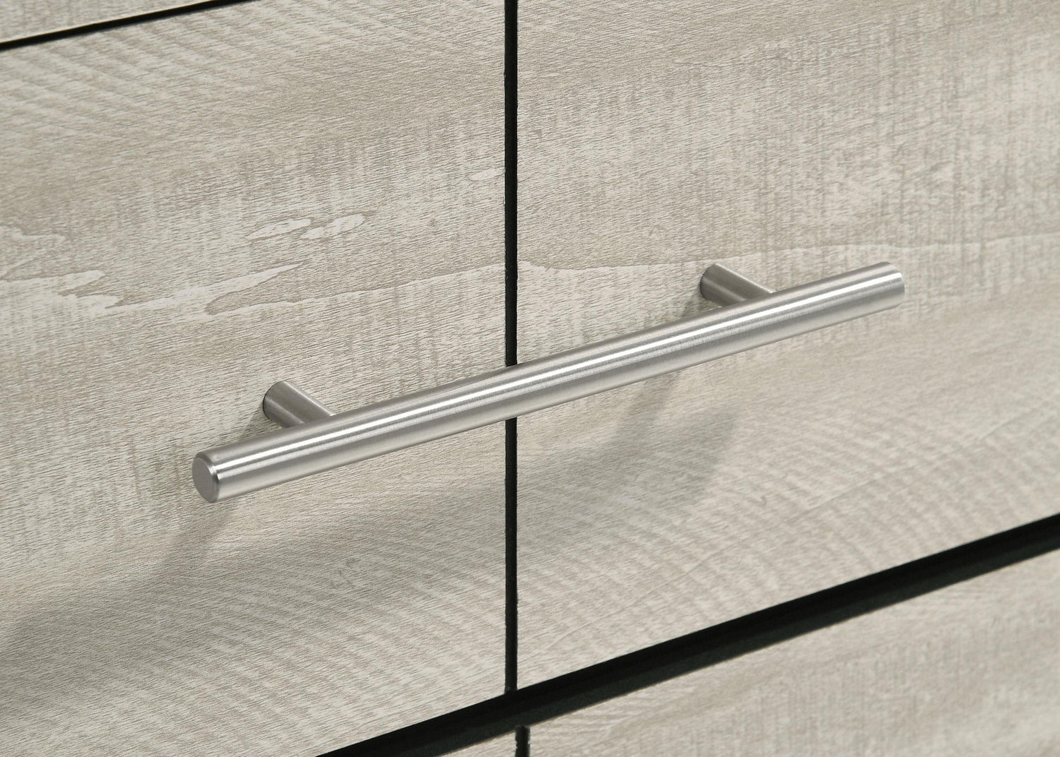 - Dresser in rustic cream with rough-sawn, white-washed engineered paper veneer