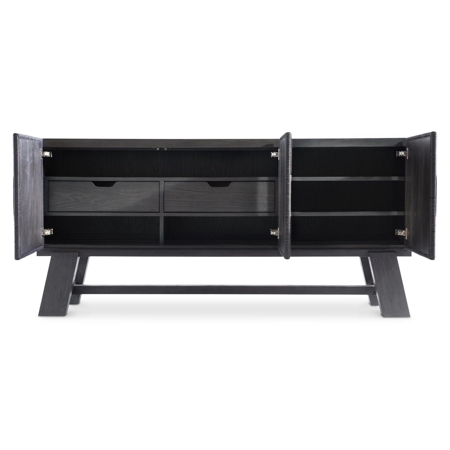 - Woven rope in alternating square pattern on door fronts