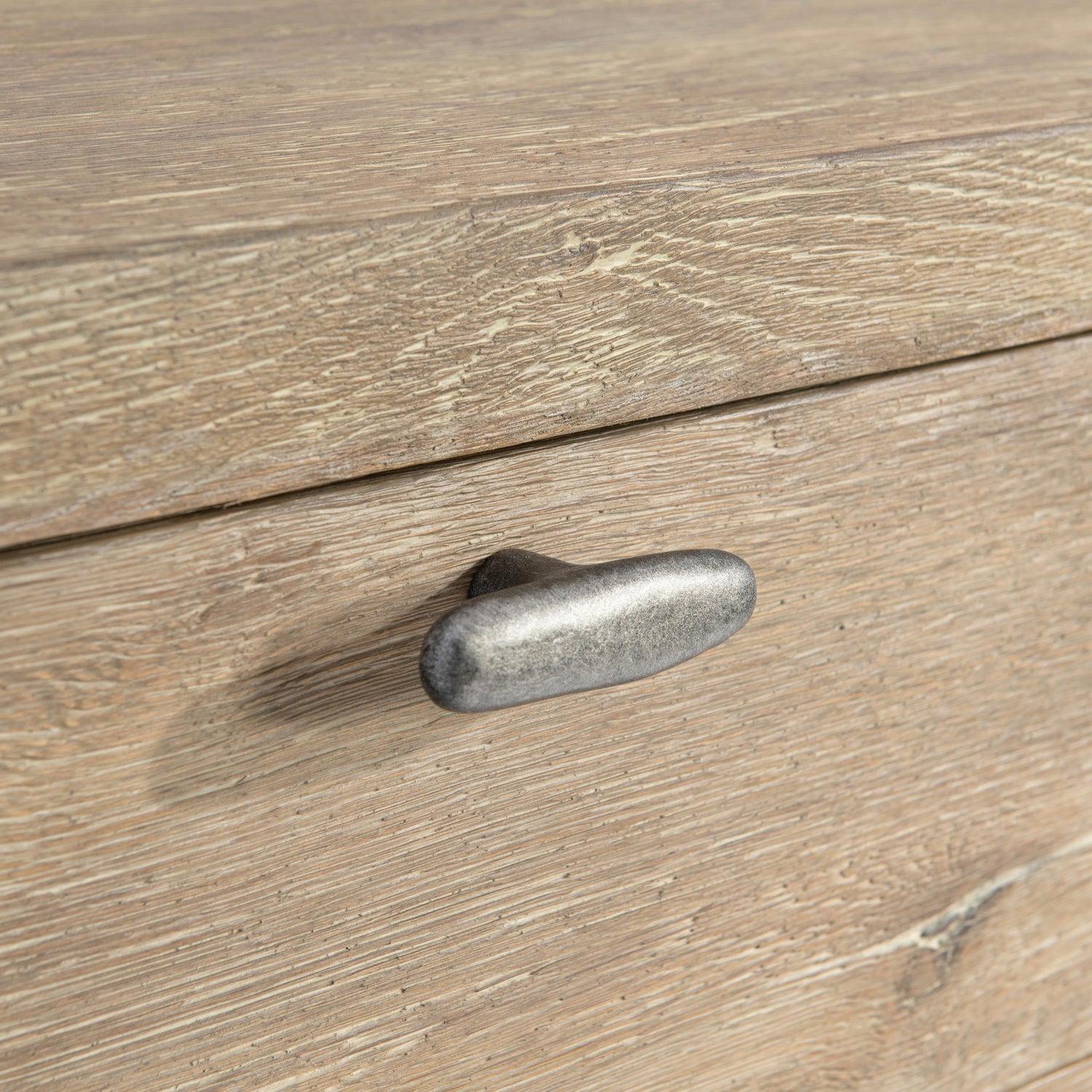 - One pull-to-open, soft close door on either side of three pull-to-open, soft close drawers, all with steel pulls in Barlow finish