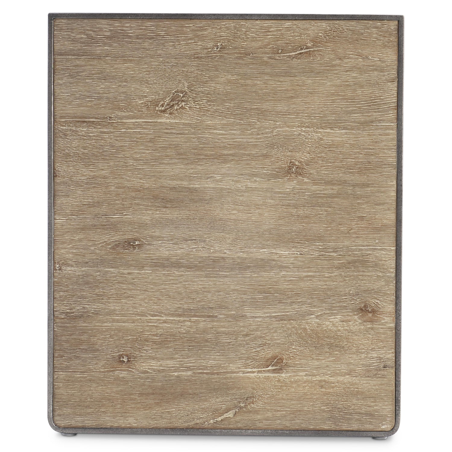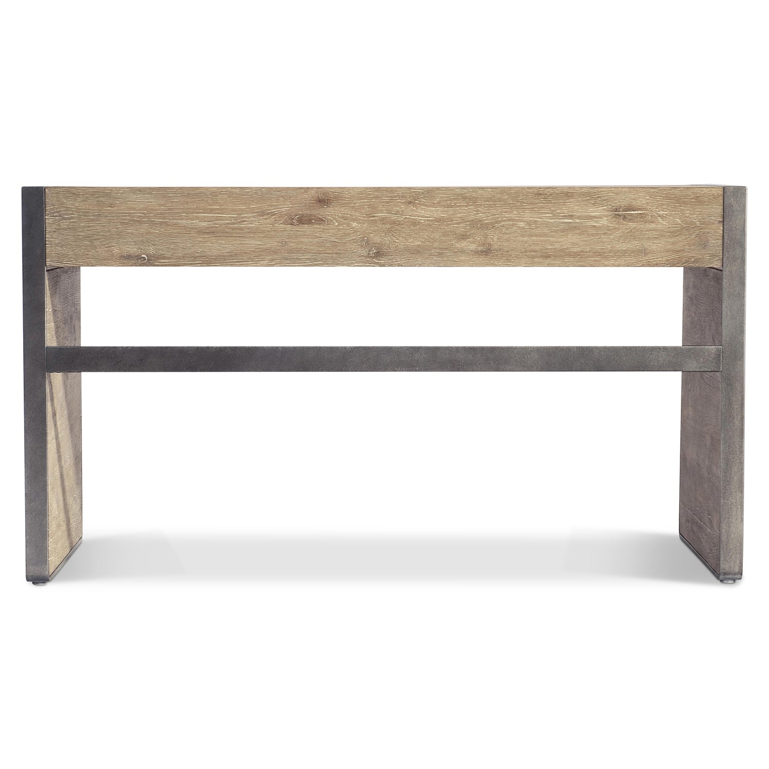 - Oak case in Aurum finish, supported by oak end panels in Aurum finish, framed by textured steel in Barlow finish with stretcher in Barlow finish
