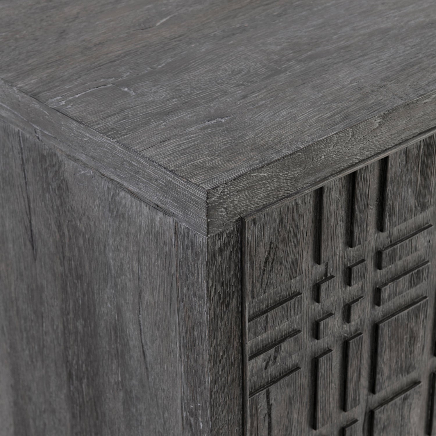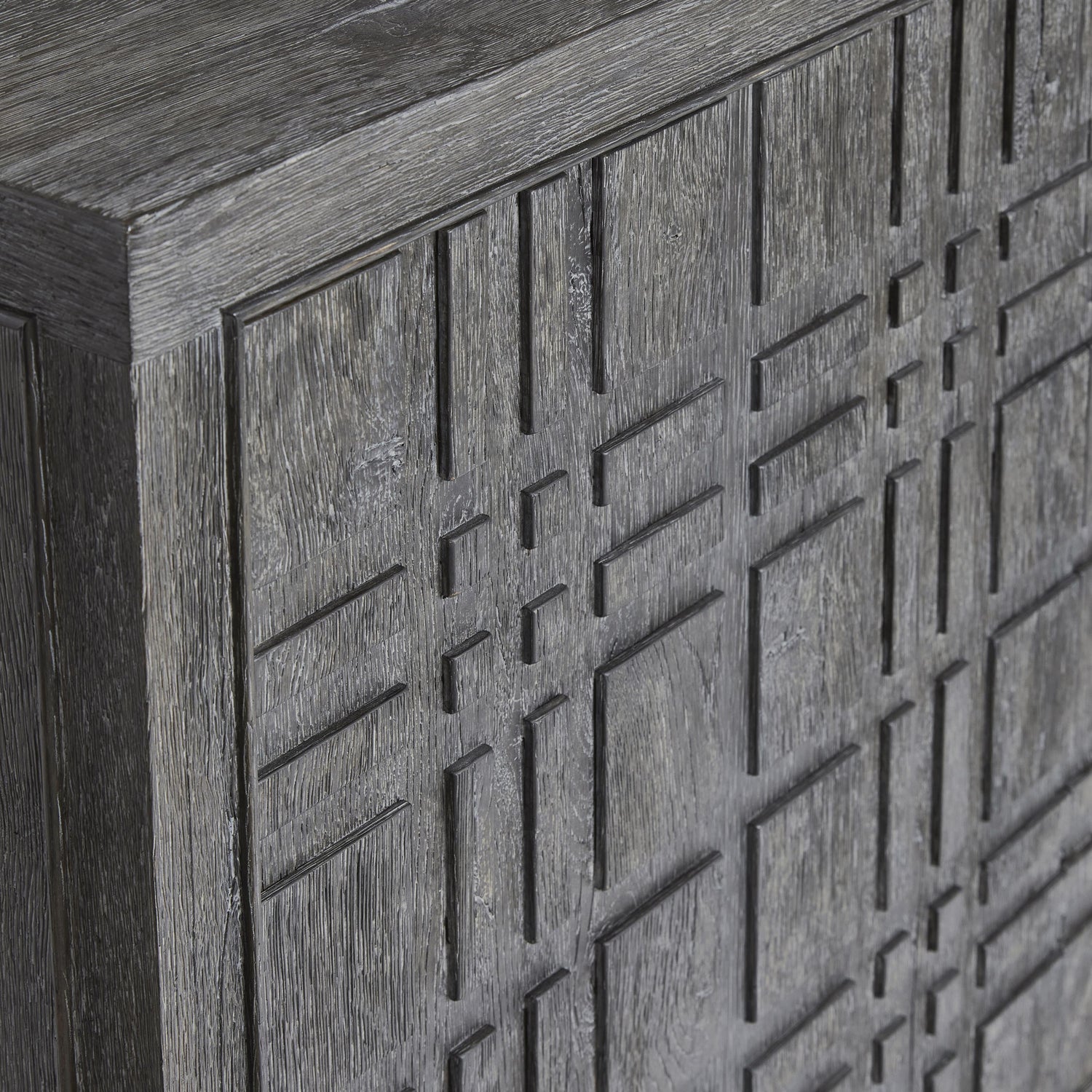 - Raised geometric pattern on two push-to-open, soft-close doors