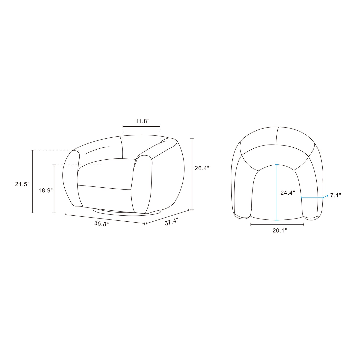 - Accent Chair Dimensions Measure: 35.8 in. Length, 26.4 in. Height, 37.4 in. Depth. Sofa Dimensions Measure: 85.8 in. Length, 26.4 in. Height, 37.4 in. Depth.