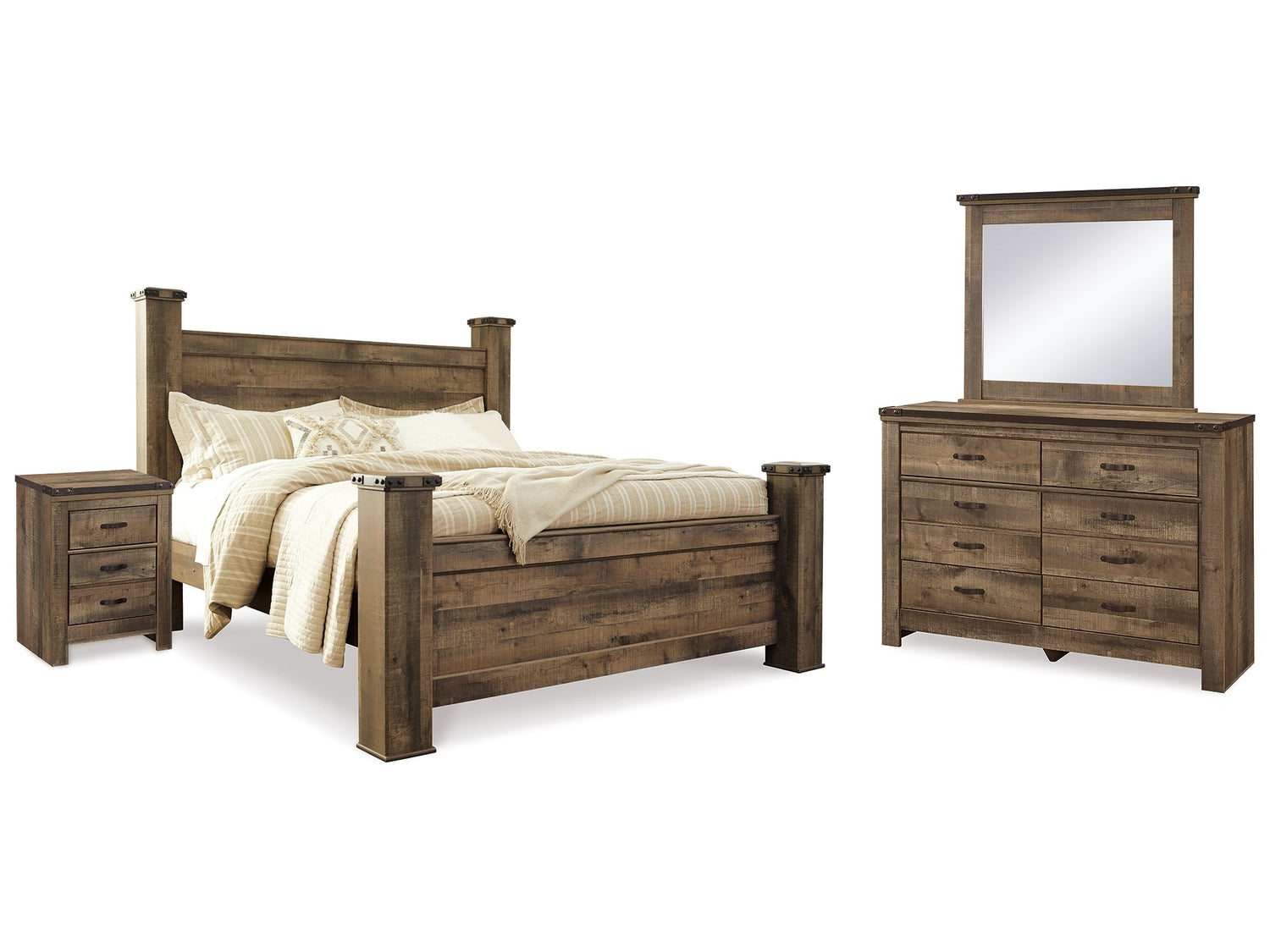 - Item Name: Trinell King Poster Bed, Dresser, Mirror and Nightstand