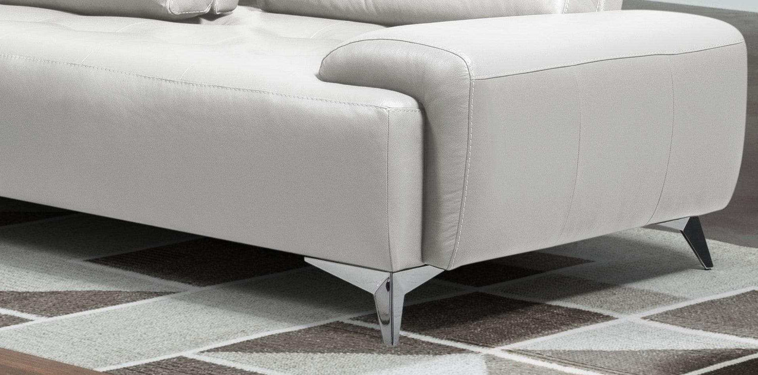 Delight your living room with the Turano sectional sofa. It is upholstered using the top quality Italian leather in a pearl white finish. The simple but elegant contemporary look will combo well with any existing furniture. Featuring button-tufted backrests and seats for a classic element to the modern design. The adjustable backrests provide added comfort and support. The metal chrome legs make this piece pop and supply a sturdy foundation.