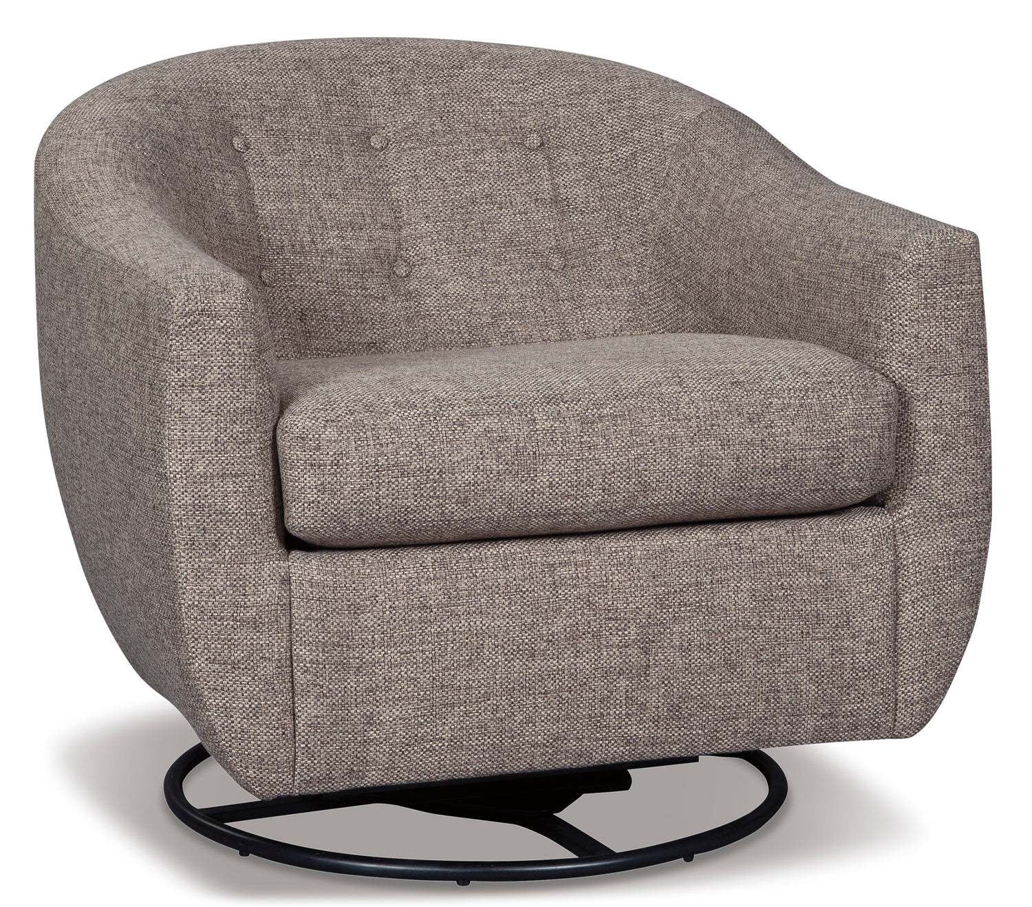 Take a turn for the better with this upscale swivel glider accent chair. Upholstered in a richly woven taupe fabric, this contemporary beauty with tufted barrel back provides a smooth 360-degree swivel that’s such a nice twist.