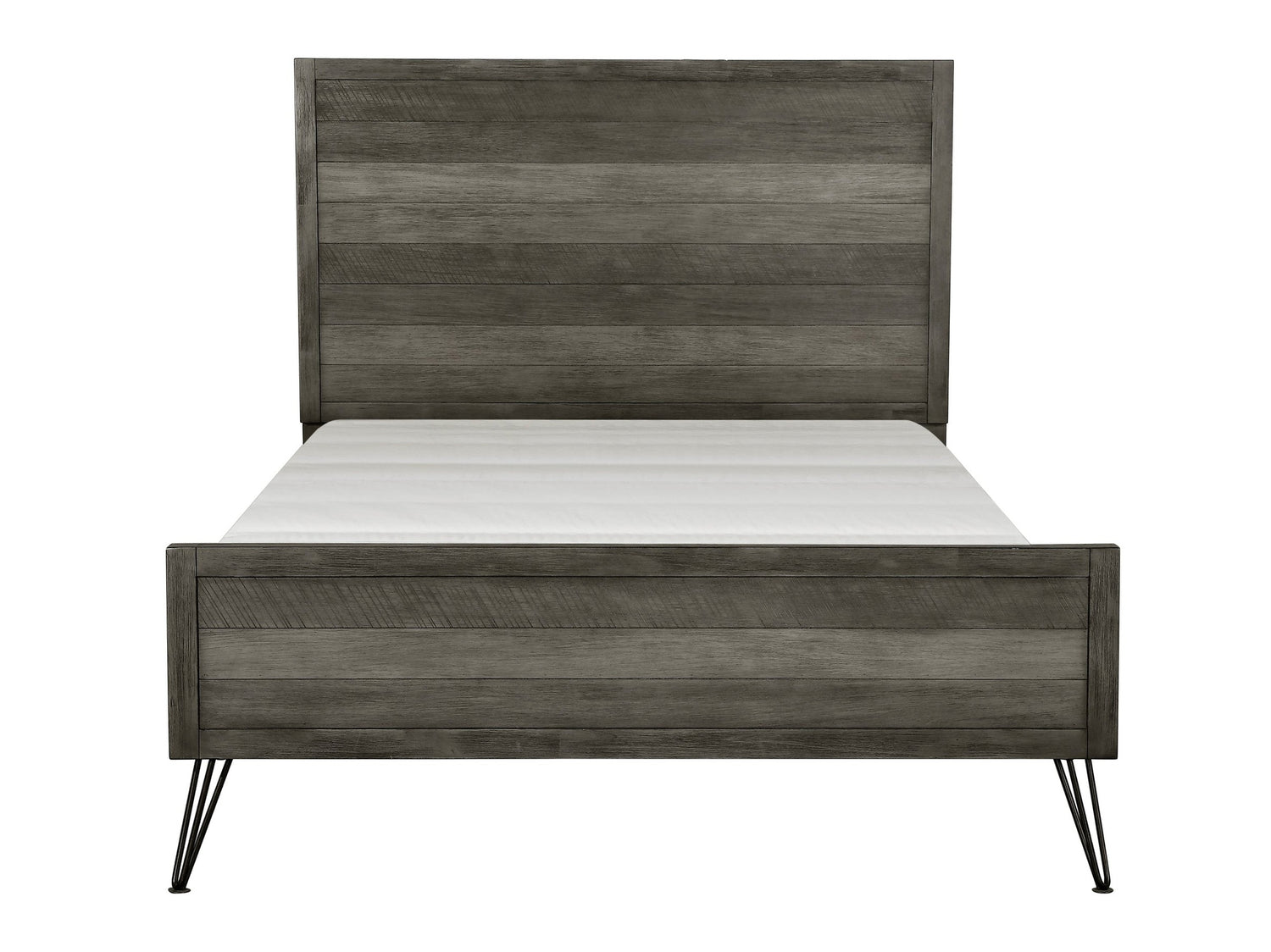 Perched atop metal legs, creating a dramatic statement of contemporary styling, the Urbanite Collection is a perfect reflection of your modern style preference. The Full bed’s solid acacia wood with acacia veneer is highlighted by a 3-tone grey finish that allows the variance of the natural grain to shine. The horizontal slat design of the headboard and footboard’s paneling lends to the clean, contemporary look.