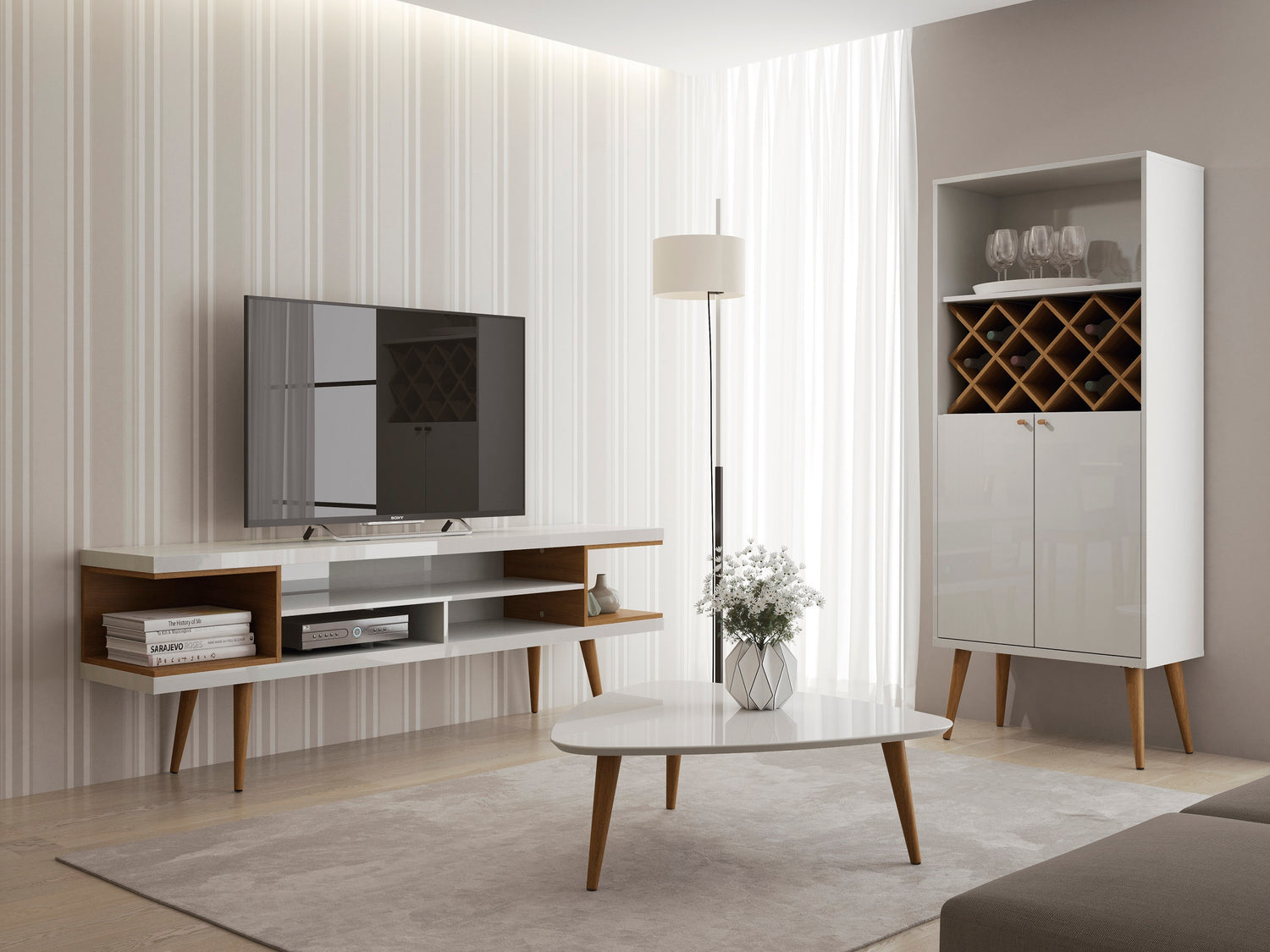 - Item Name: Utopia 70.47 TV Stand in White Gloss and Maple Cream