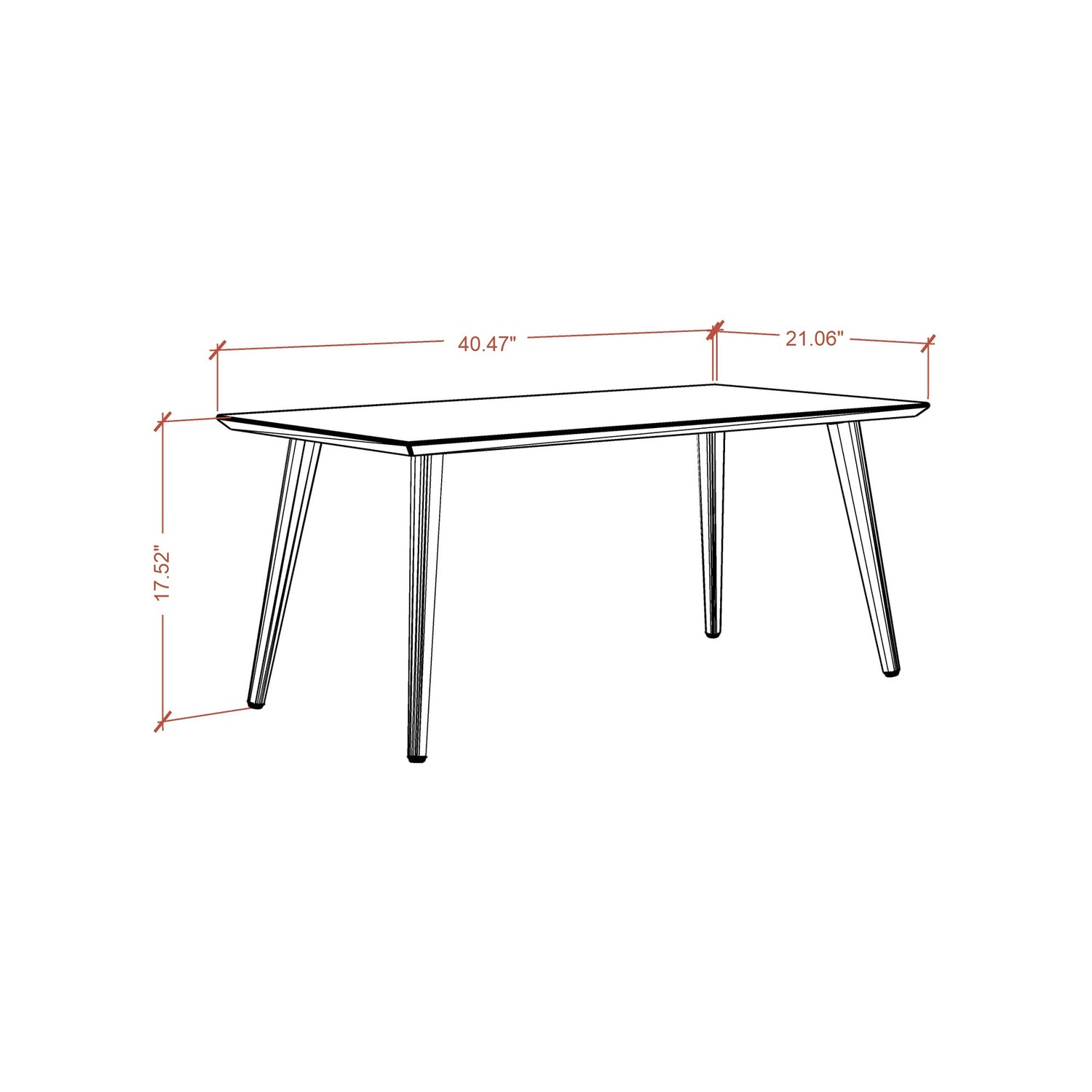 - Upon assembly, Coffee Table Dimensions Measure: 40.47 in. Length, 17.52 in. Height, 21.06 in. Depth.