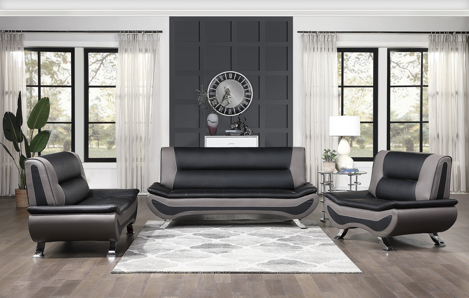 - Item Name: Veloce Black/Gray Faux Leather Loveseat