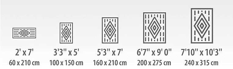 Exact Dimensions in Foot: 2'x3' - 2'x7'2" - 3'3"x5' - 5'3"x7'3" - 6'7" X 9'0" - 7'10"x10'