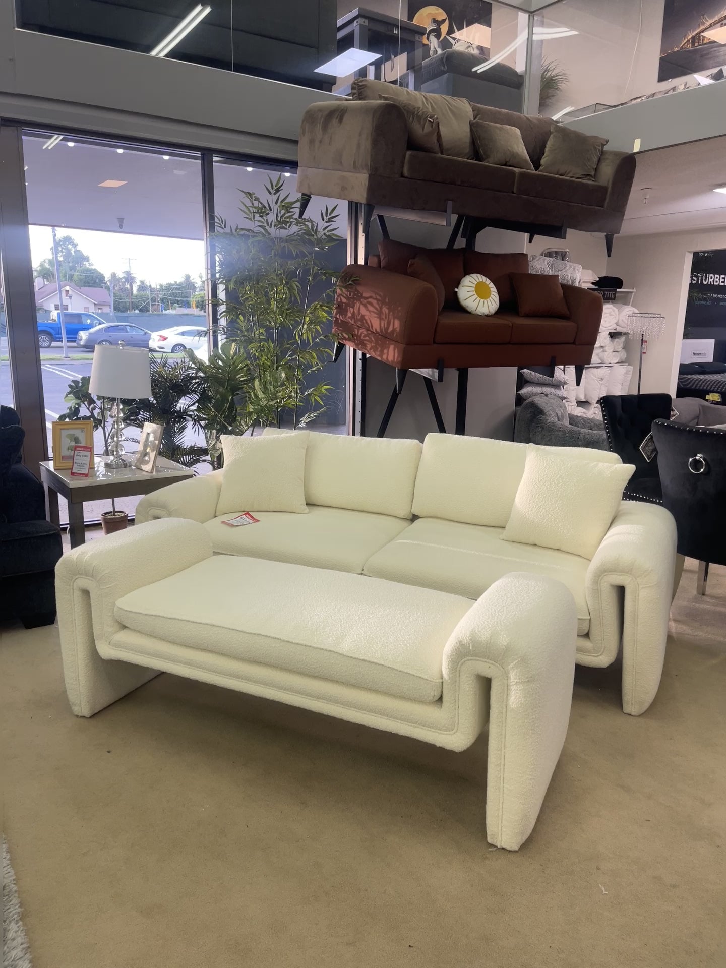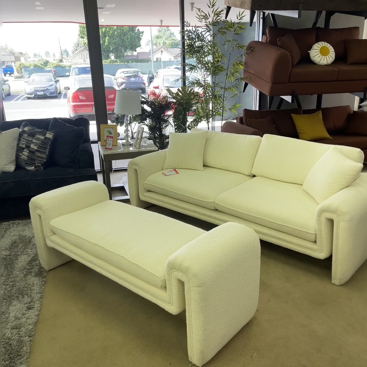 Ventura Ivory Boucle Uph. Designer Living Room Set