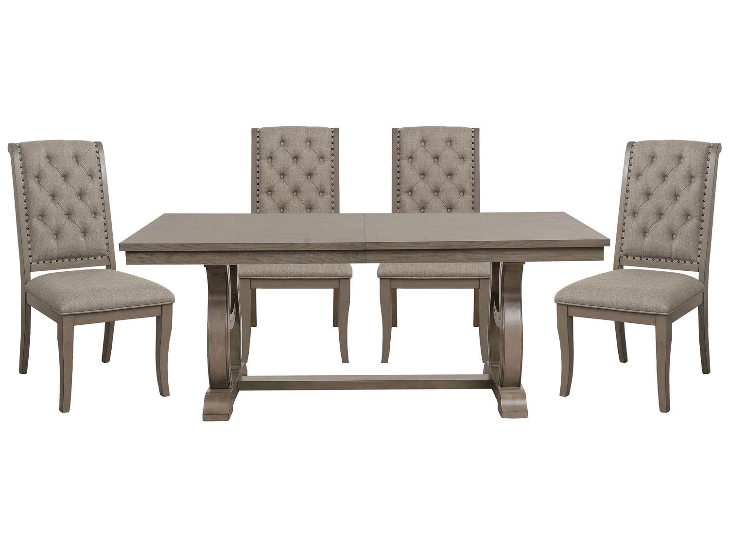 - Dining set includes dining room table and 4 side chairs