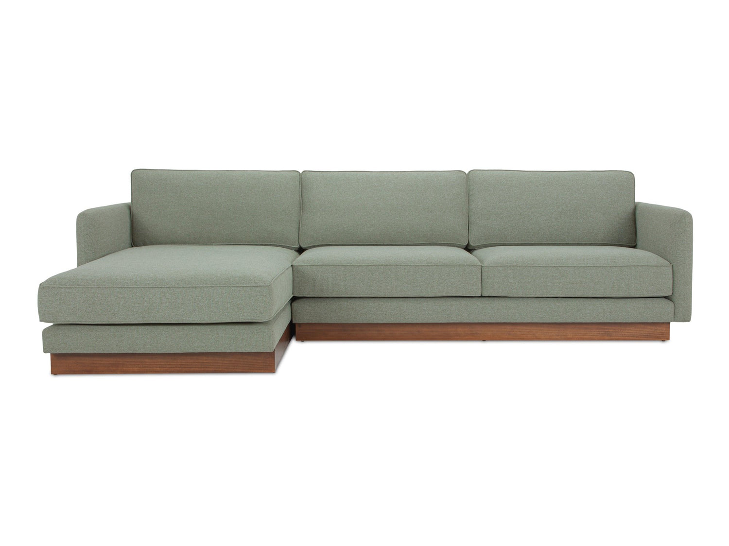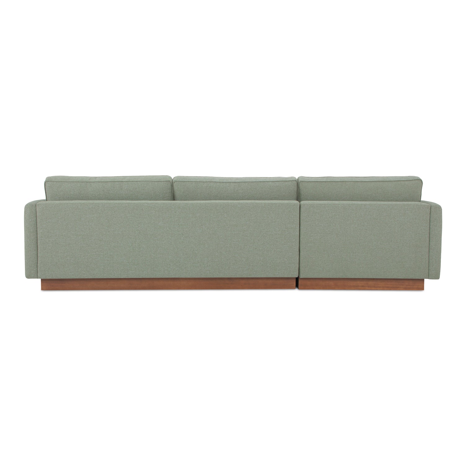 - Large sectional featuring a walnut tone veneer base with solid beech & plywood frame- 100% polyester upholstery: a Green Guard fabric with 50,000 rub count
