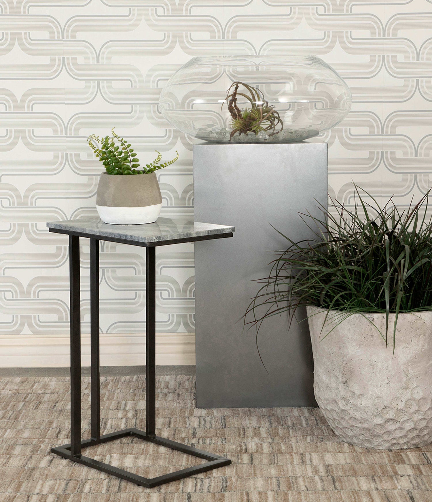 Keep a drink or snack close by as you watch a favorite TV series. This contemporary accent table offers a spacious surface area for mugs, tablets and more with its classically designed marble top. The smooth and polished marble top rests on an iron cantilever style base that extends the top gracefully over a sofa or armchair, inviting you to rest personal devices, drinks and more within reach. The cantilever base also offers a chic aesthetic with its slim tubular design and flush base. Doubling as a laptop stand, this accent table makes a smart addition to seating arrangements, remote work areas and guest bedrooms.