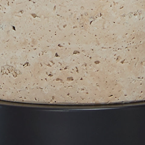 - Made of beige travertine and metal with a metal shade- Dark brown finish