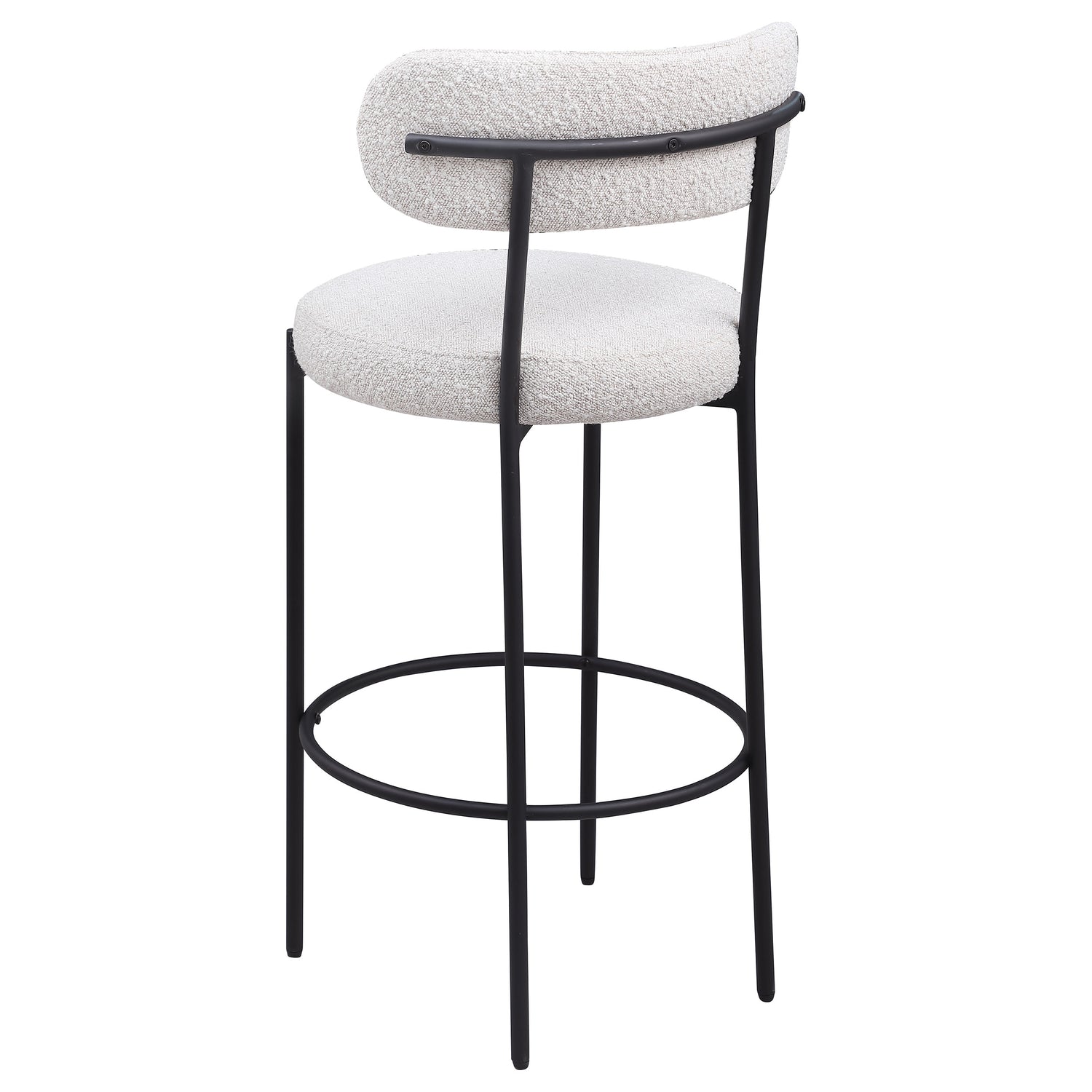 - Boucle upholstery is lightly textured for a fresh look and on trend appeal
