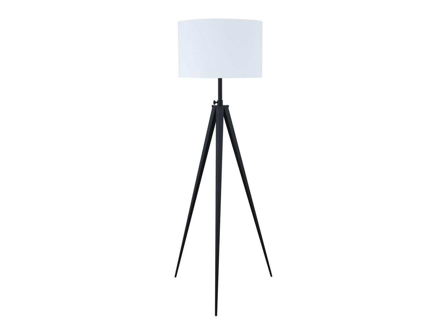 Spruce up the lighting in your home with this modern three-legged floor lamp. Featuring a mid-century design in traditional black and white colors, this lamp is excellent in a home with classic black decor or modern white furnishings. The white linen-like drum shade sits handsome atop three wide-angled black legs for a distinctive silhouette. The metal legs are forged from metal to ensure long-lasting durability. The modern design allows it to be suitable for the home entertainment room or eclectic-styled family room.