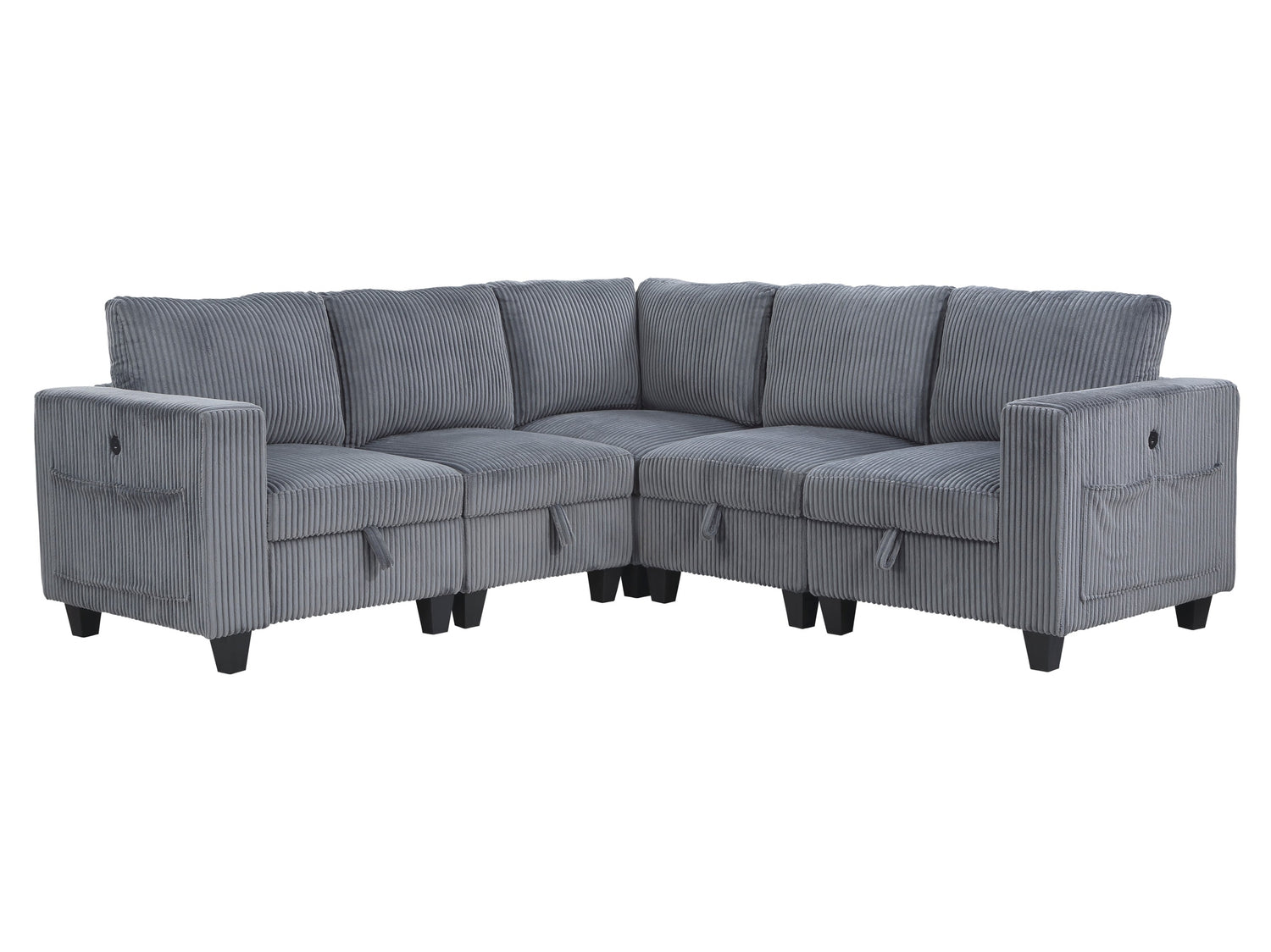 - Item Name: Walterboro 5-Piece Sectional With Storage, Storage Pouches And Charging Ports