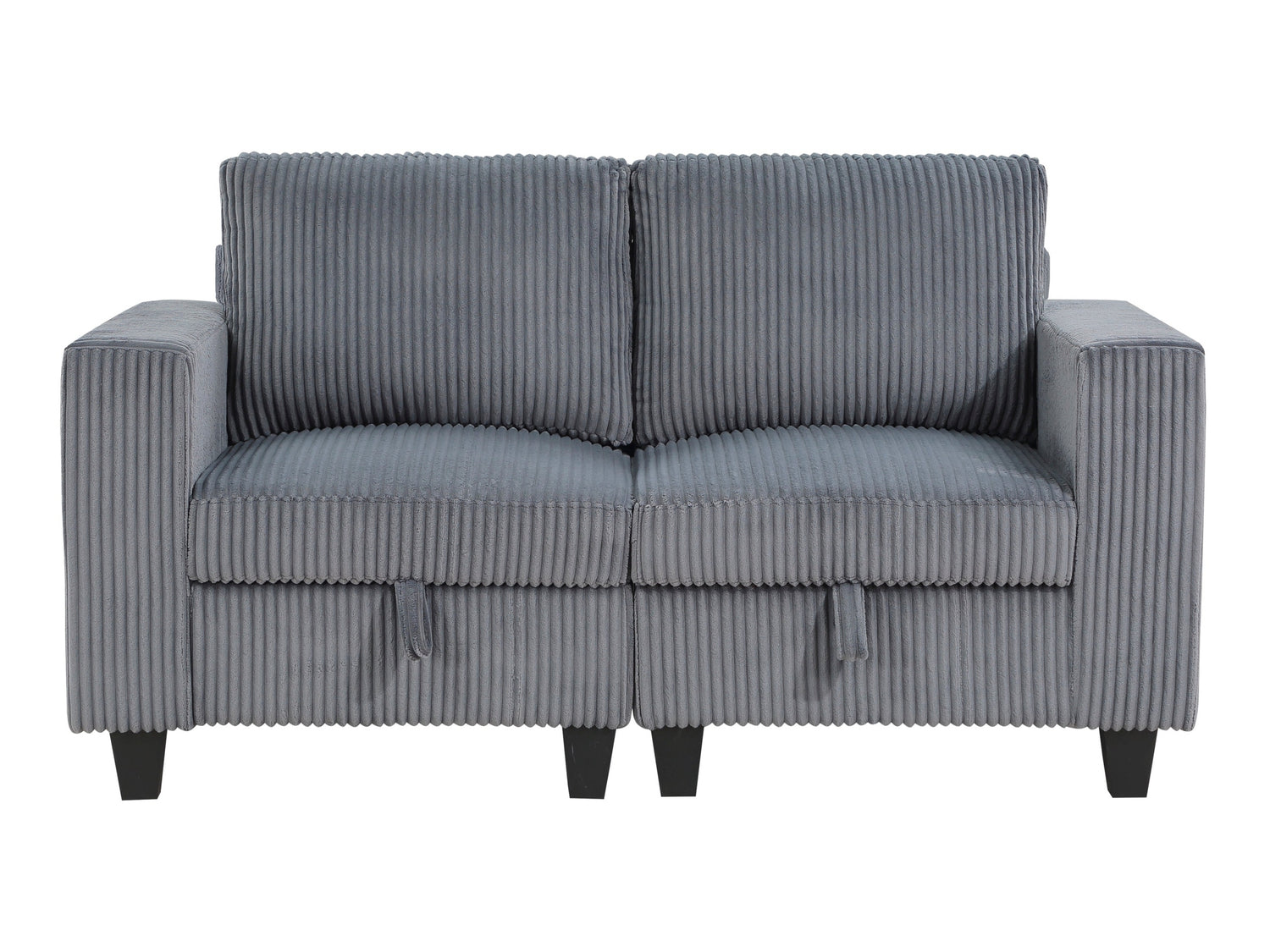 Item Name: Walterboro Dark Gray Loveseat with Storage, Storage Pouches and Charging Ports