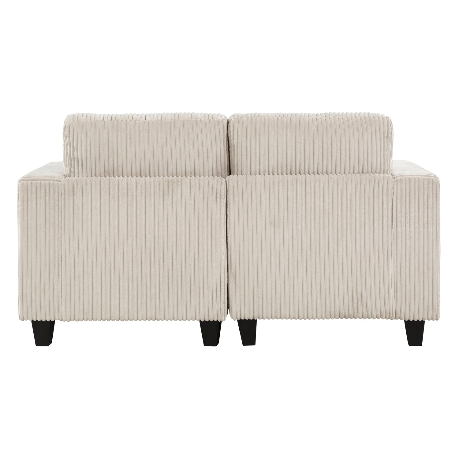 The multifunctional design of the Walterboro Collection creates a seating group that is not only configurable to your available space but serves as a convenient storage spot within your casual living room. Pull-out storage drawers are neatly tucked beneath the seats of the love seat, each drawer easily accessible with a pull to the front-mounted loop handle. The paired end seats arm's provide side support and power charging ports. The collection is covered in beige corduroy fabric for a neutral complement to your home’s décor.