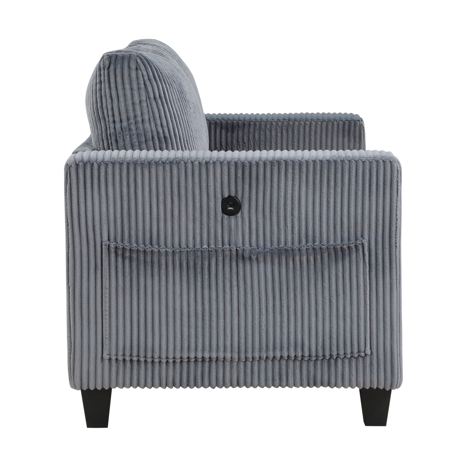 - Arm chair with USB charging port and storage pouches