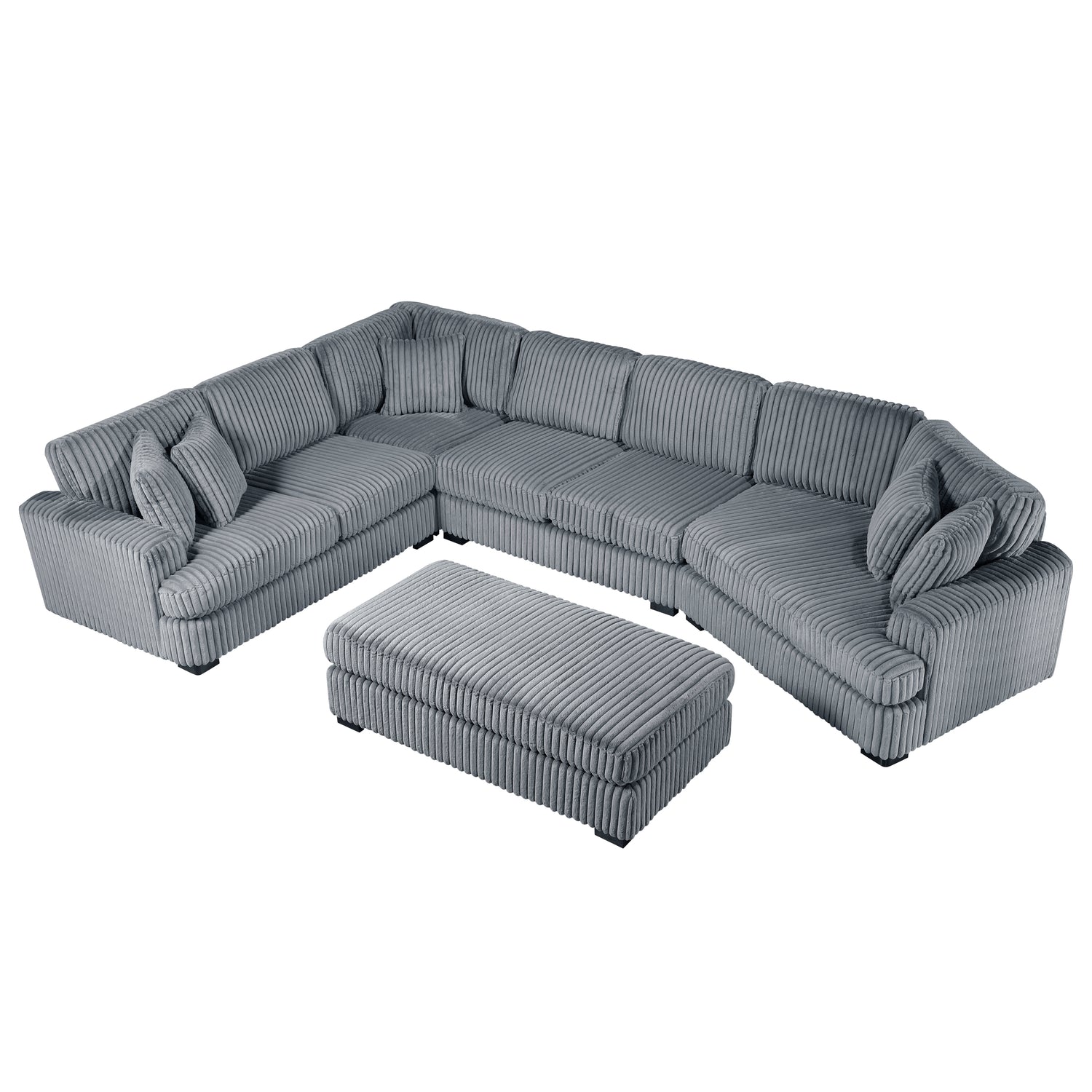 Item Name: Warwick Gray 5-Piece Sectional with Right Cuddler and Ottoman