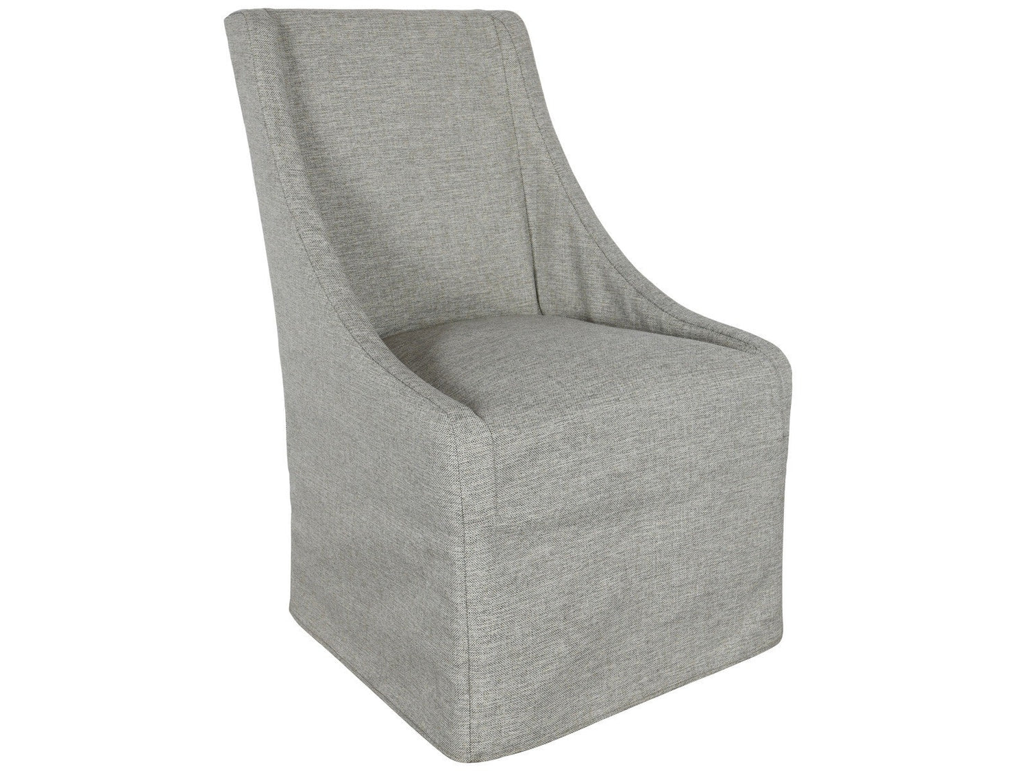 A simple silhouette and neutral granite-colored upholstery allow this dining chair to complement your space ease.