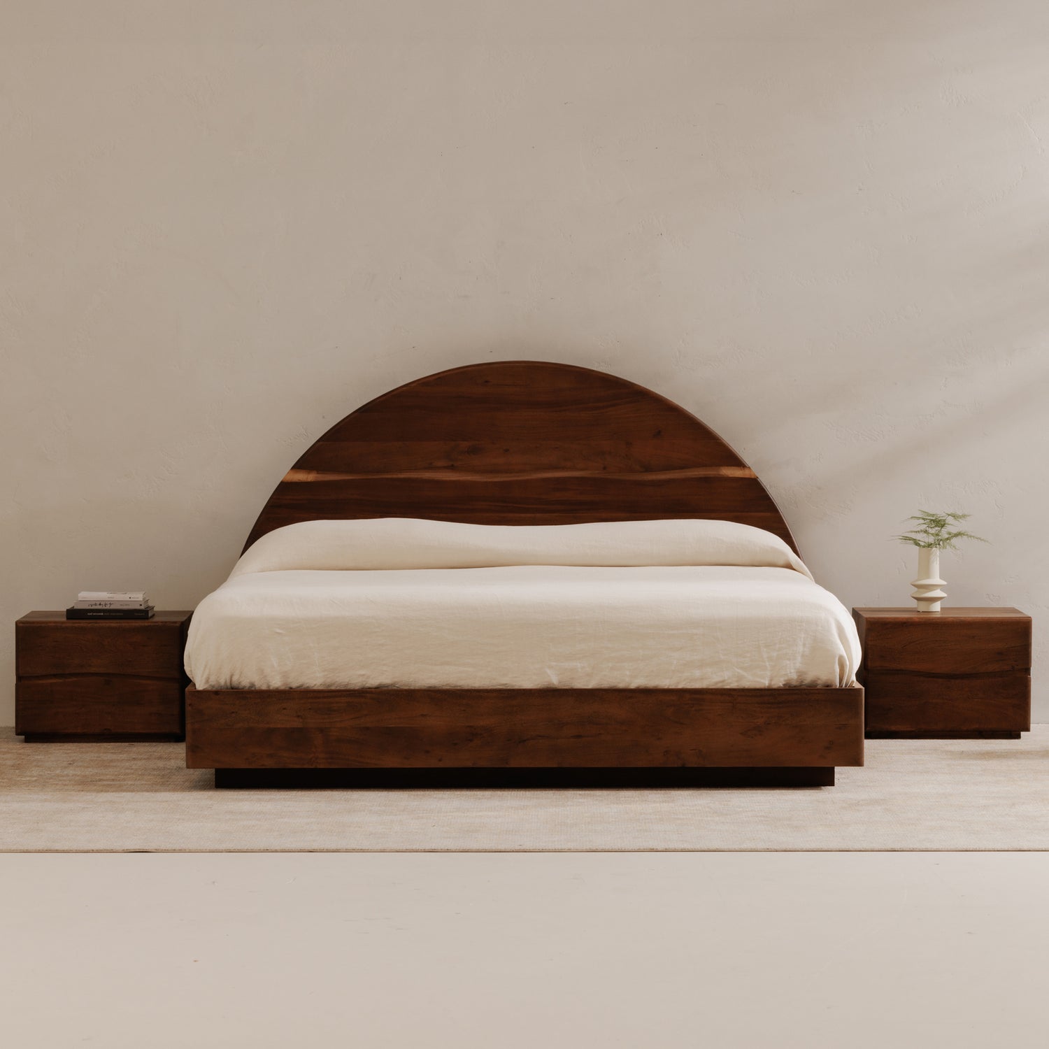 - Solid Acacia with walnut finish & finished back- Supportive slats are included with this design to ensure the mattress doesn’t sink or slide, no box spring necessary