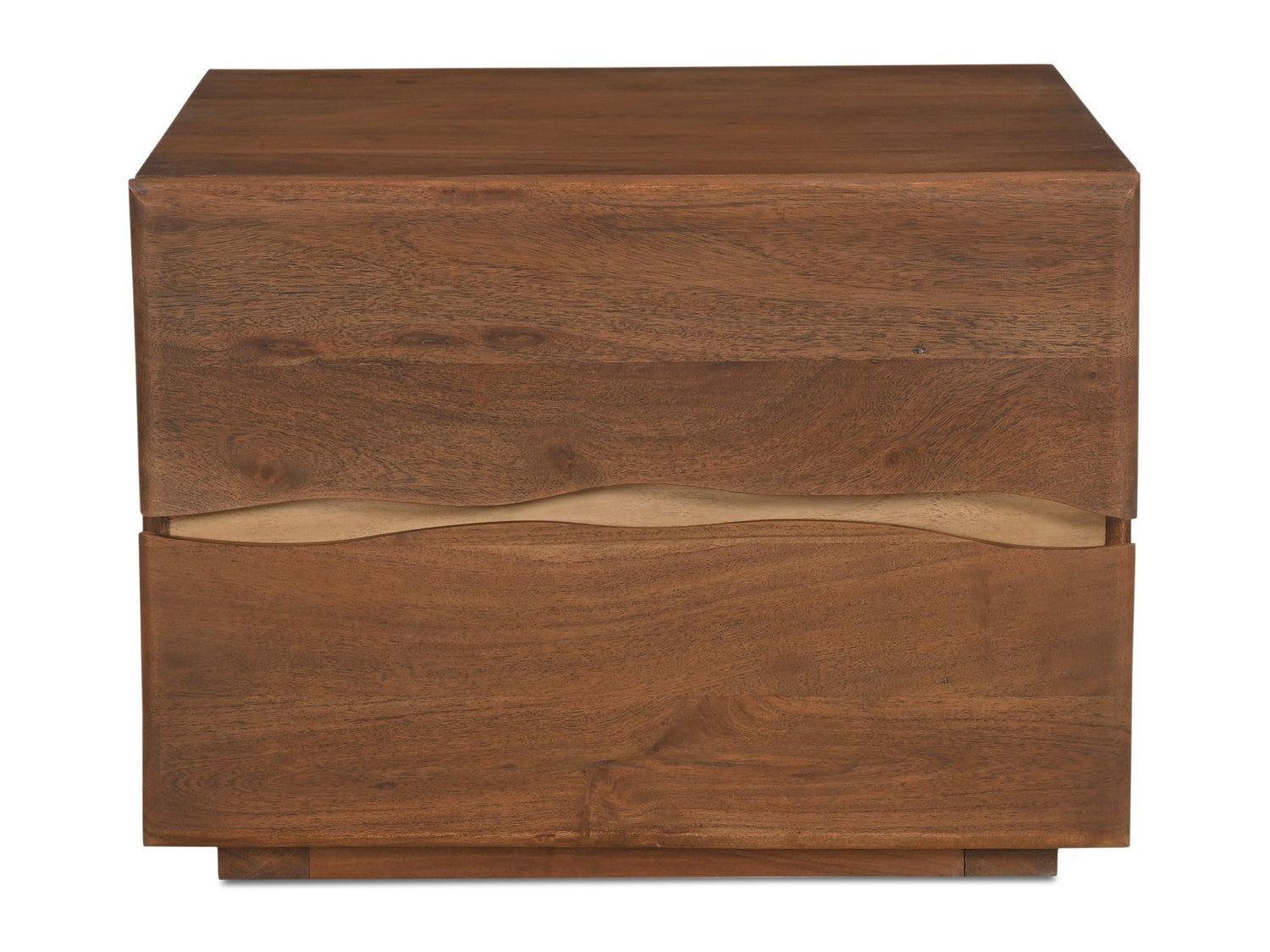 - Solid Acacia with walnut finish & finished MDF back- 2 drawers with side mount metal ball bearing glides & safety stop
