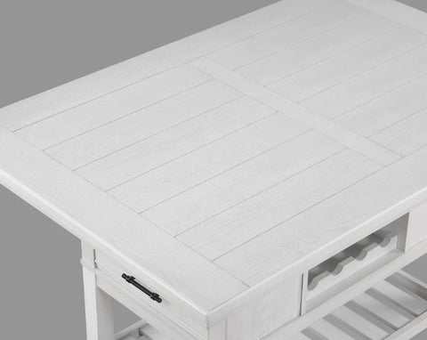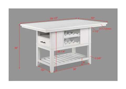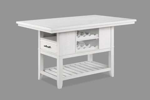 Designed with functionality in mind, this counter height table features multiple storage options. Built with one drawer and shelf on either side and wine bottle storage shelves, this farmhouse-inspired counter height table is a perfect addition to any dining space. The sleek design and ample storage options make this table a great choice for any kitchen or dining area.