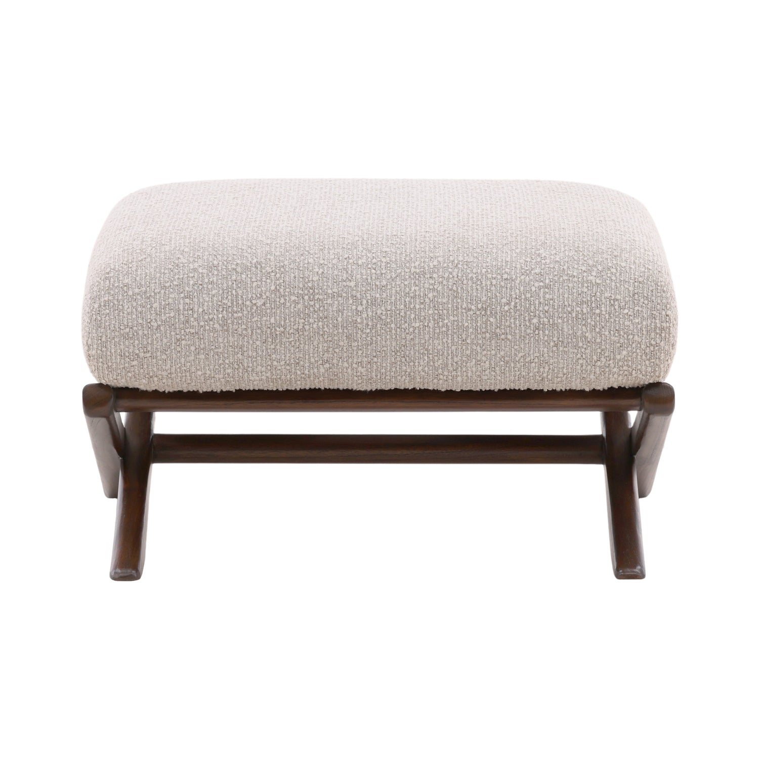 The Wesson Ottoman is crafted with soft boucle fabric and a durable Mindi wood frame. Its cream and brown finish offers a versatile, stylish addition to any room, providing both comfort and sophistication. The combination of materials ensures a cozy, functional piece that enhances your space.