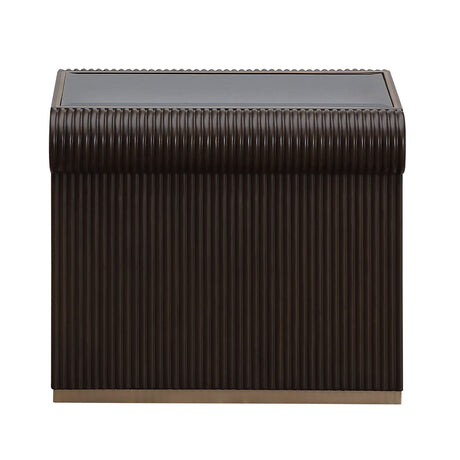 - Striking Reeded Wood Back: Espresso-finished reeded wood detailing provides a bold architectural contrast.