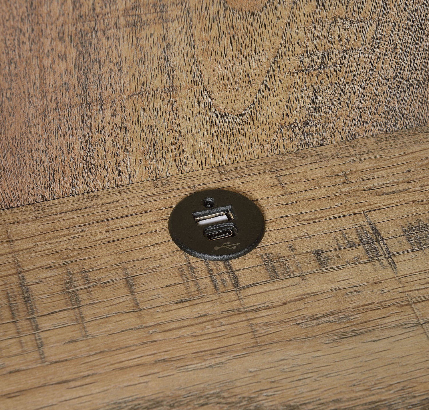 - Each nightstand includes USB-A and USB-C charging ports for bedside connectivity,