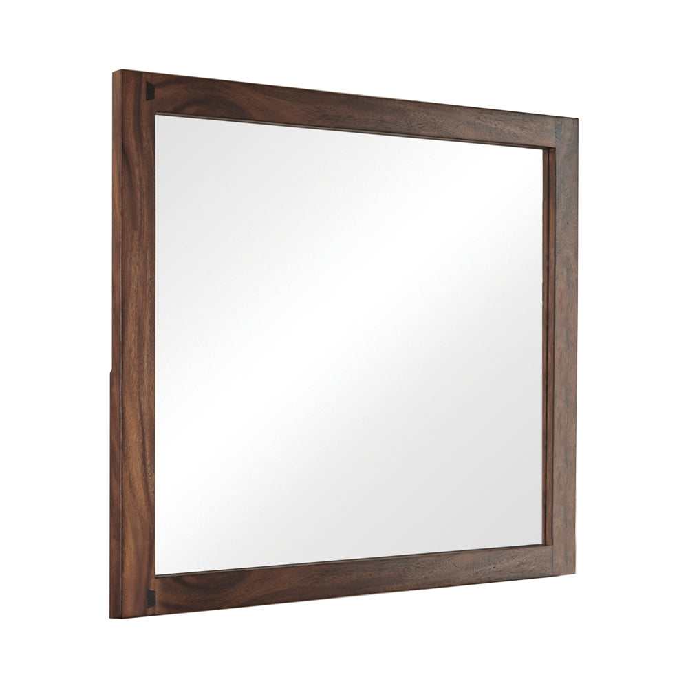This five-piece bedroom set has all the practicality and stylish appeal that a master bedroom demands. Rich wood grain accents highlight the smokey walnut finish that gives each piece its striking good looks. The casual yet majestic queen has an alluring two-piece headboard and ample storage space in the form of side compartments under the bed. The matching dresser, chest, and Nightstand: are crafted with deep drawers that fit seamlessly into each piece. The clean, crisp lines and overall stylishness of the collection are punctuated by the included dresser mirror that's a perfect accent piece to this casual but elegant set.