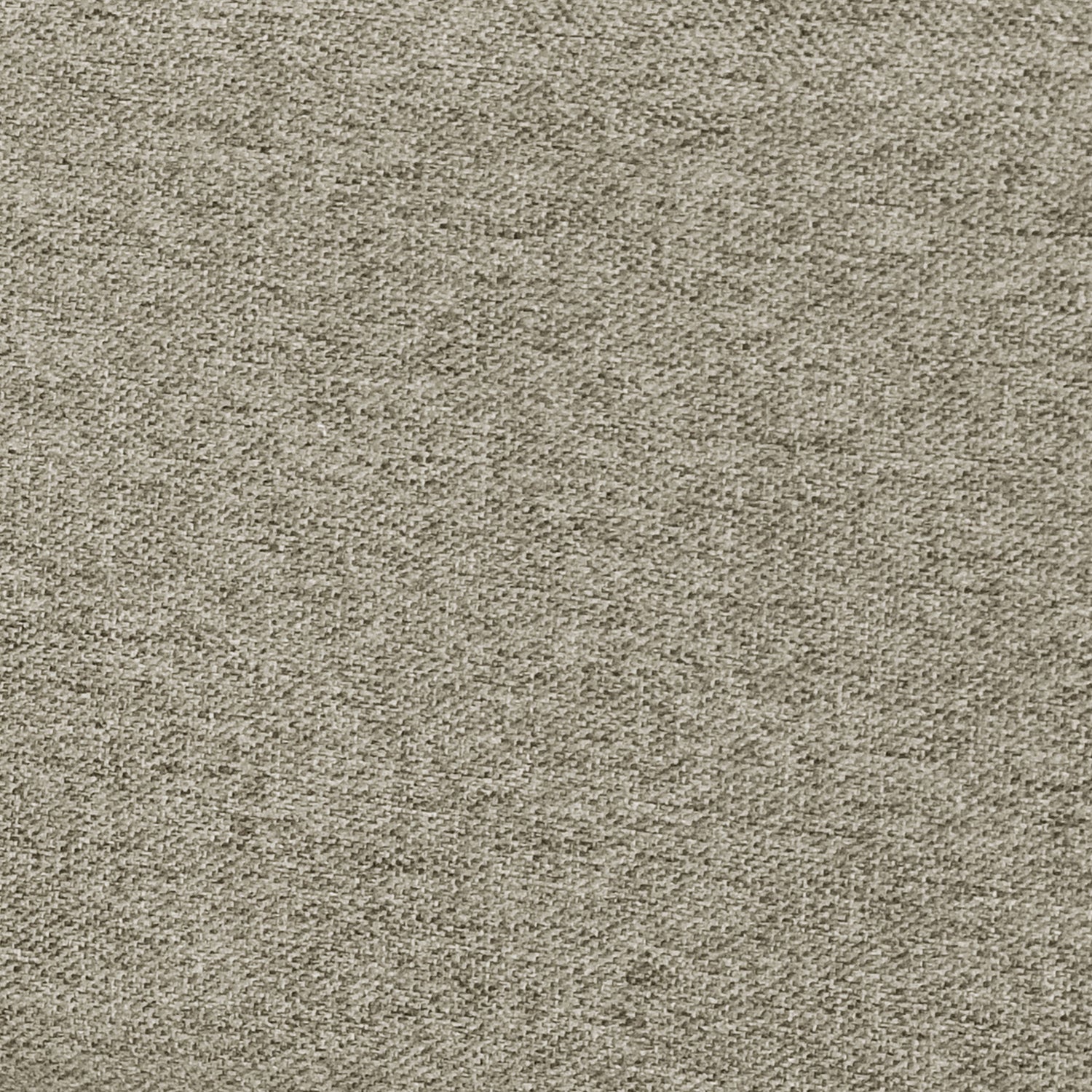 - Padded headboard is augmented with foam and covered in tan fabric for an appealing neutral look