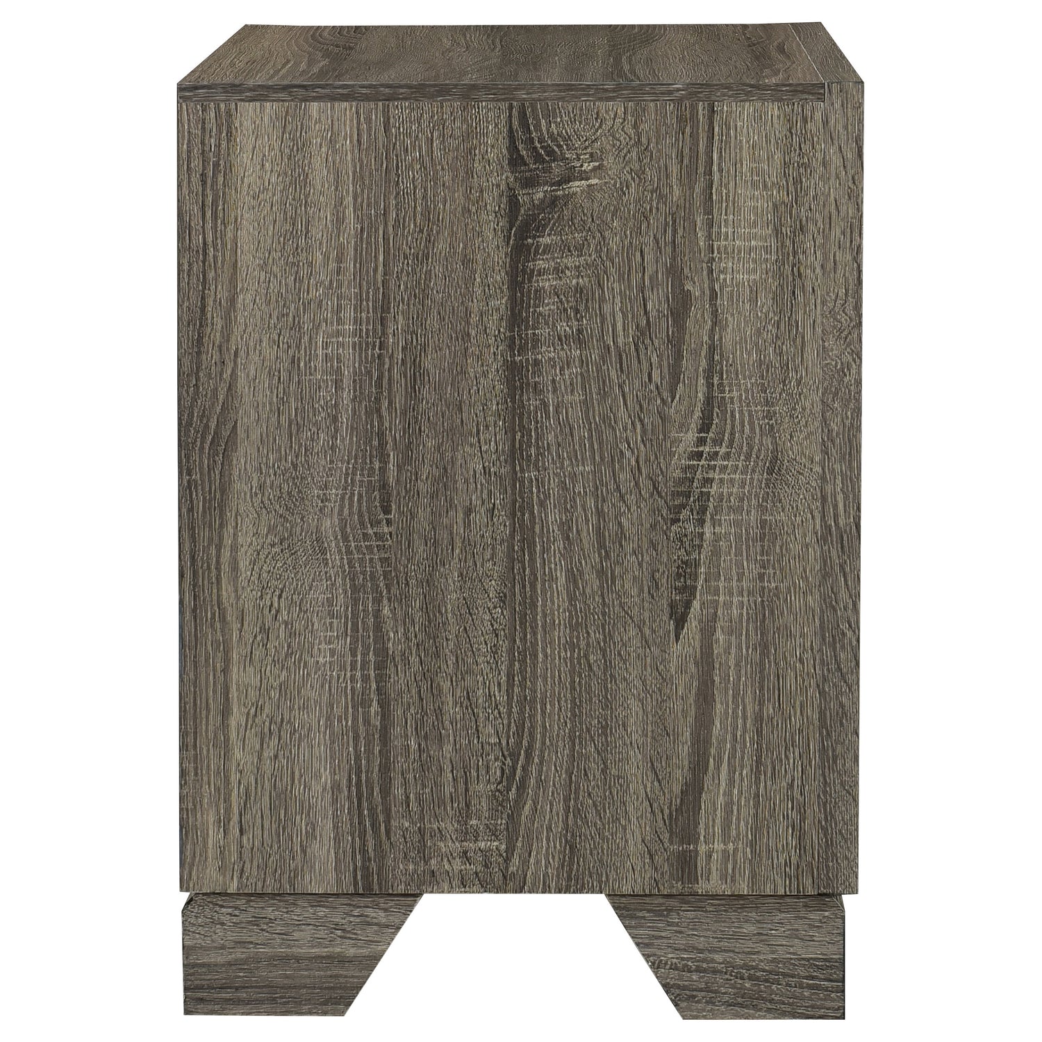 - Includes: One (1) nightstand- Crisp style enhances the clean lines of a transitional two drawer nightstand with tapered legs