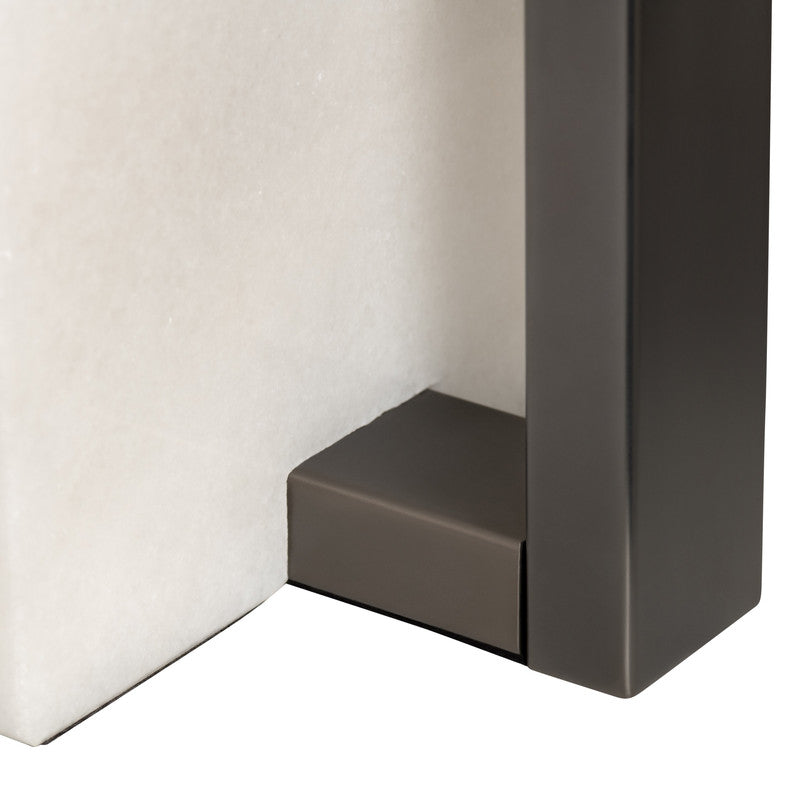 - Features a white alabaster slab framed by a sleek black metal frame for striking symmetry