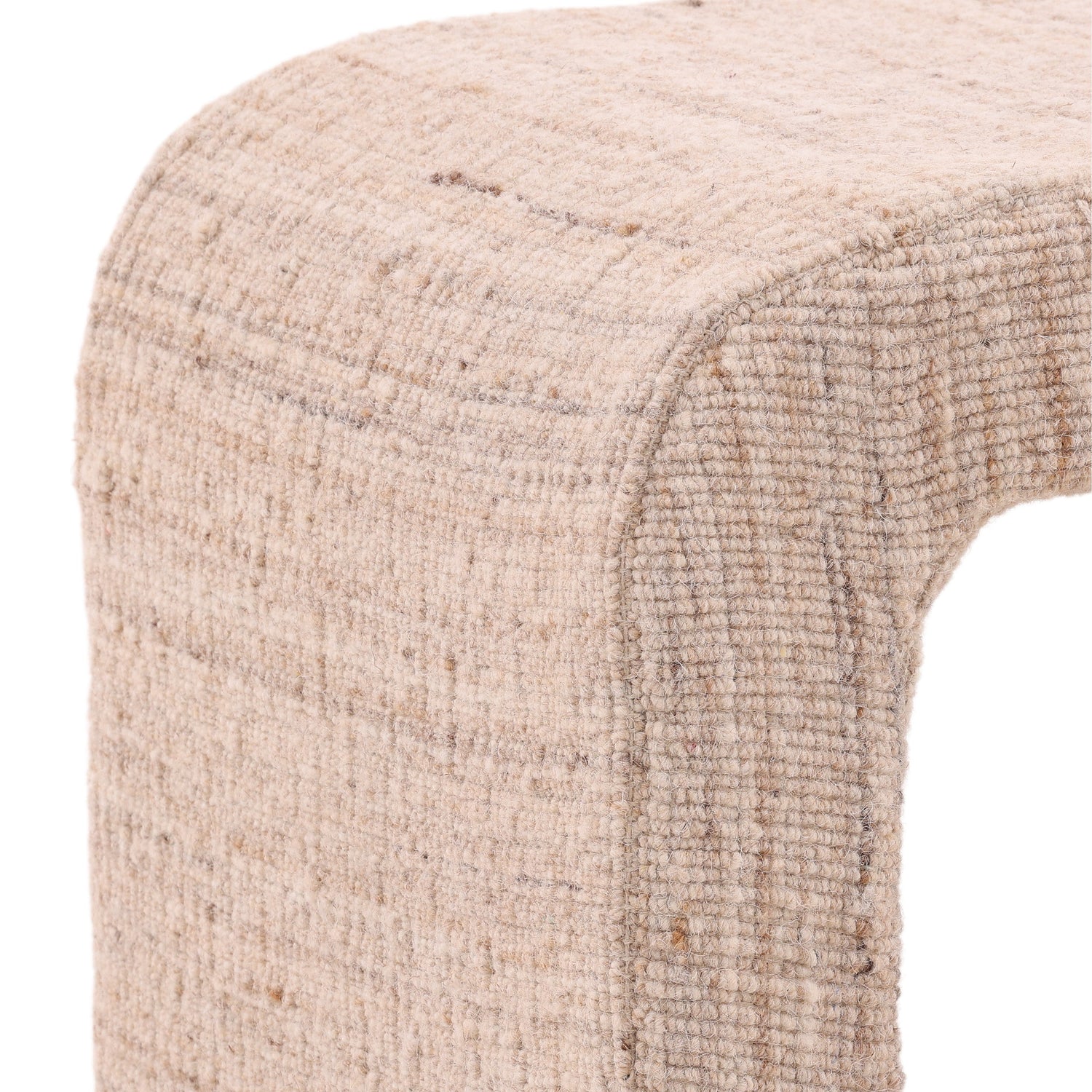 The Yaelle Stool features a beautifully handwoven wool blend in a soft beige finish, offering a cozy and stylish accent to any room. Its compact design makes it versatile for additional seating or as a decorative piece, adding a touch of warmth and texture to your space.