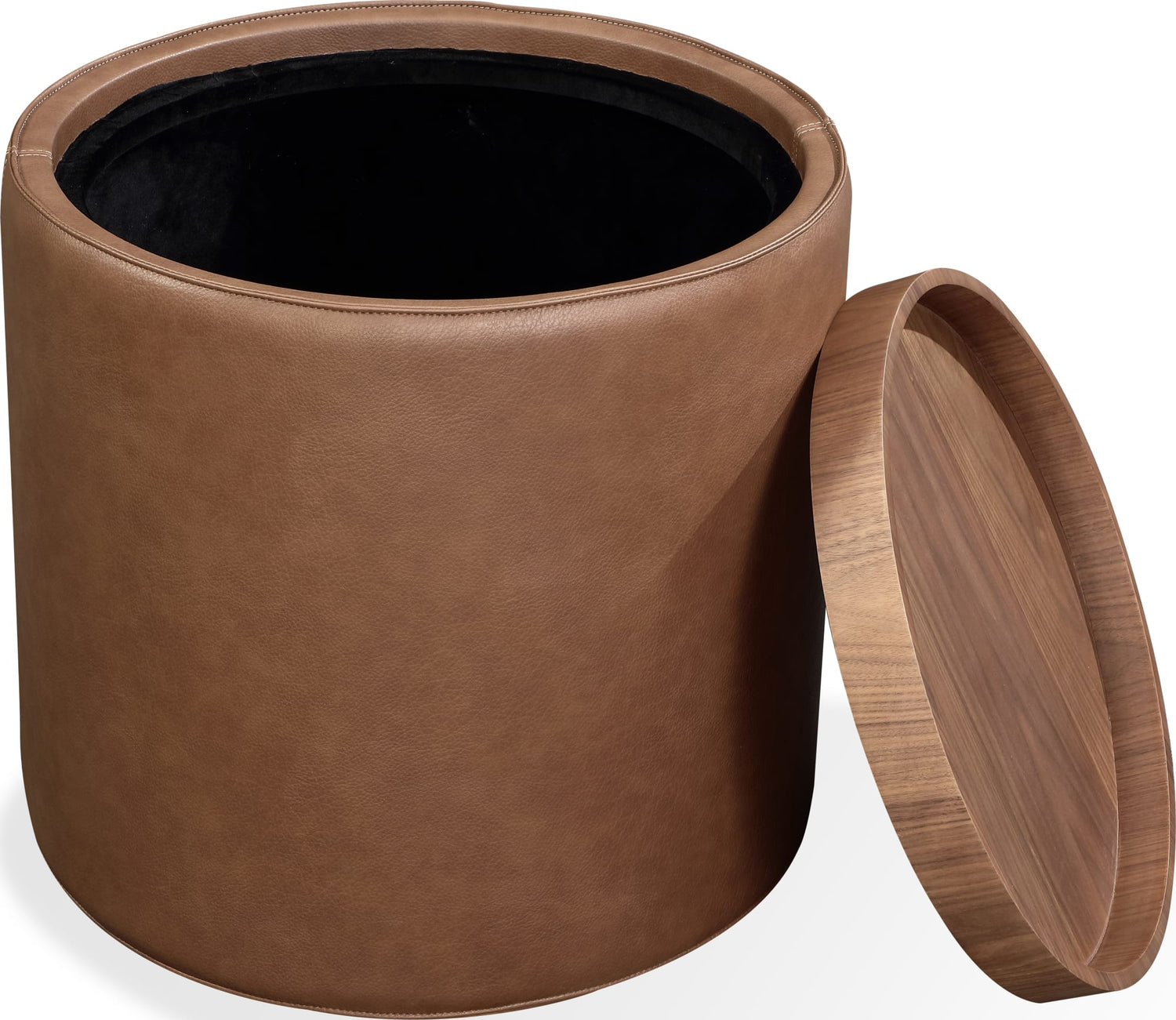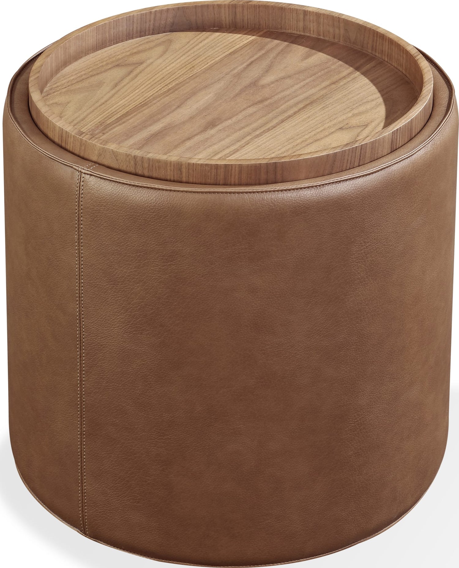 - Item Name: Yeal Sahara Leather Upholstered Storage End Table with Wooden Tray Top