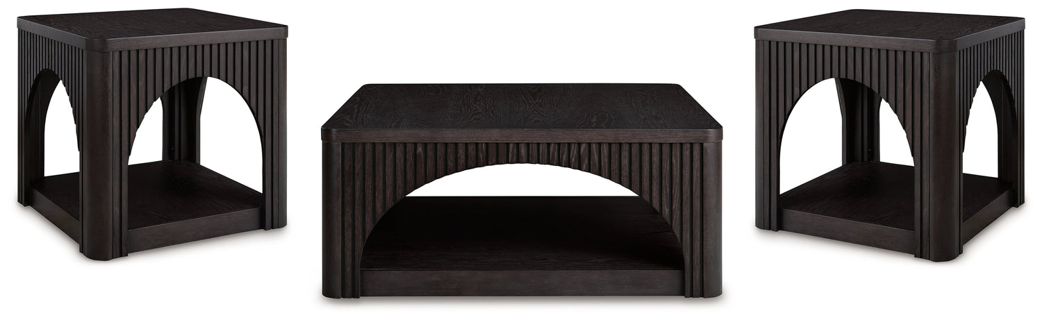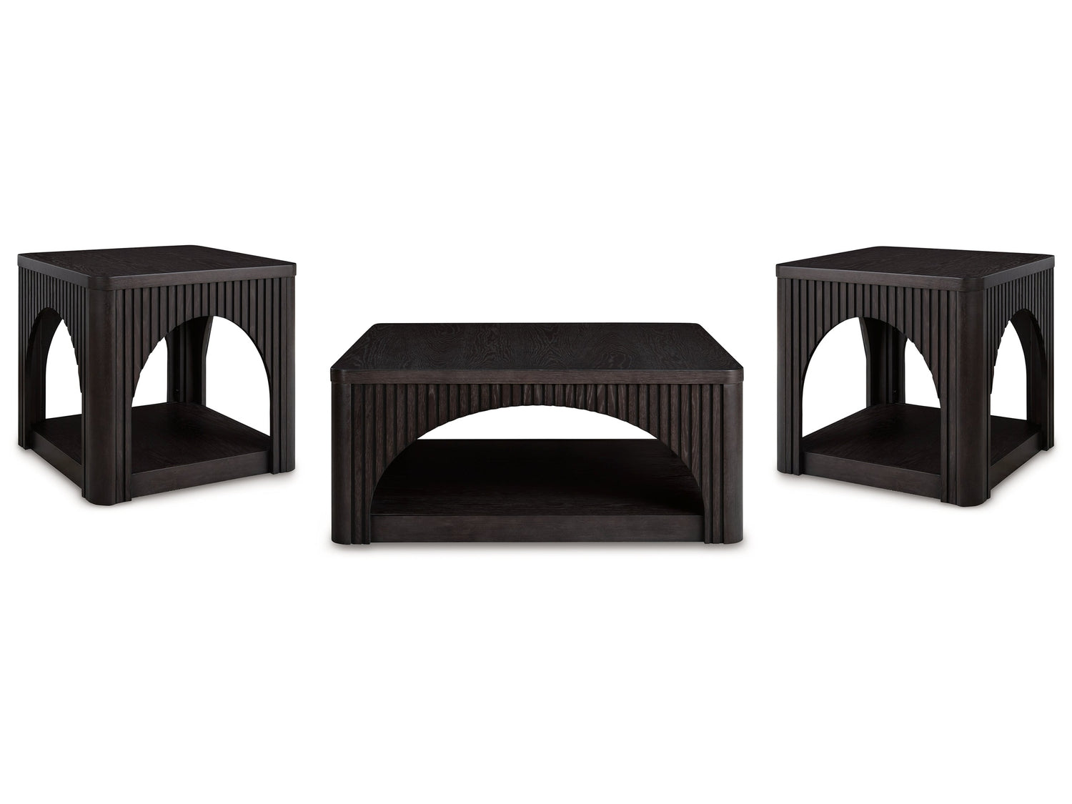 This occasional table package exudes style and sophistication with its dark French black finish. Architecturally designed with unique arches and lattice details, this set adds on-trend elegance to your existing home decor.