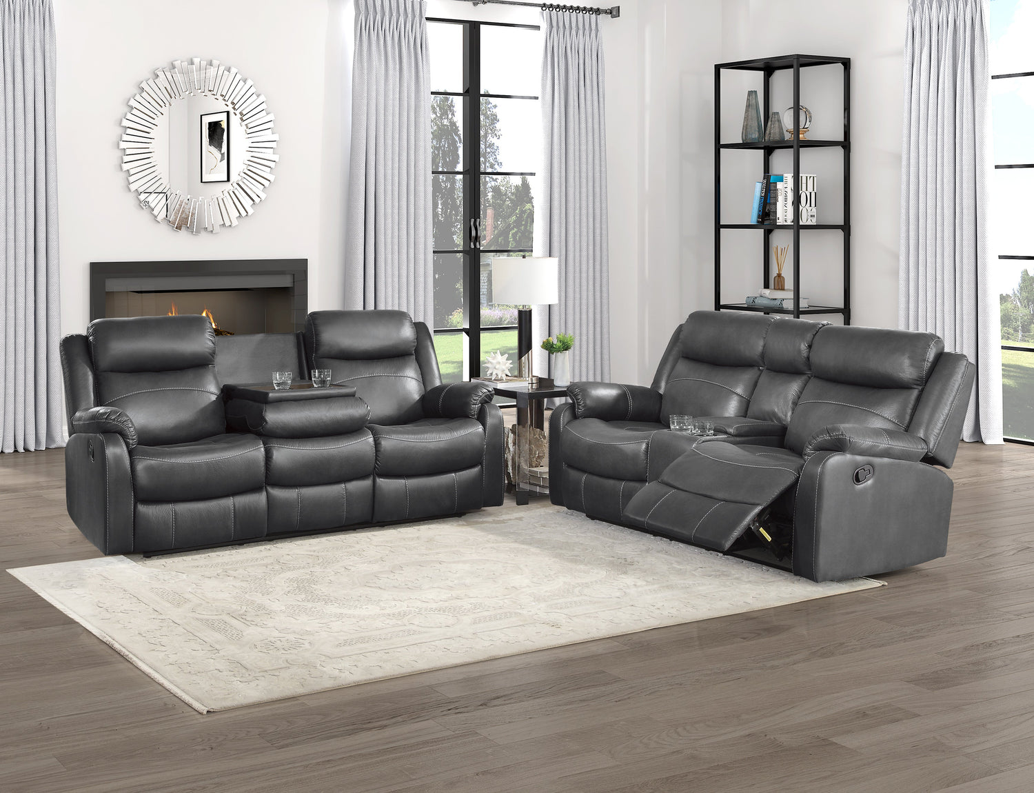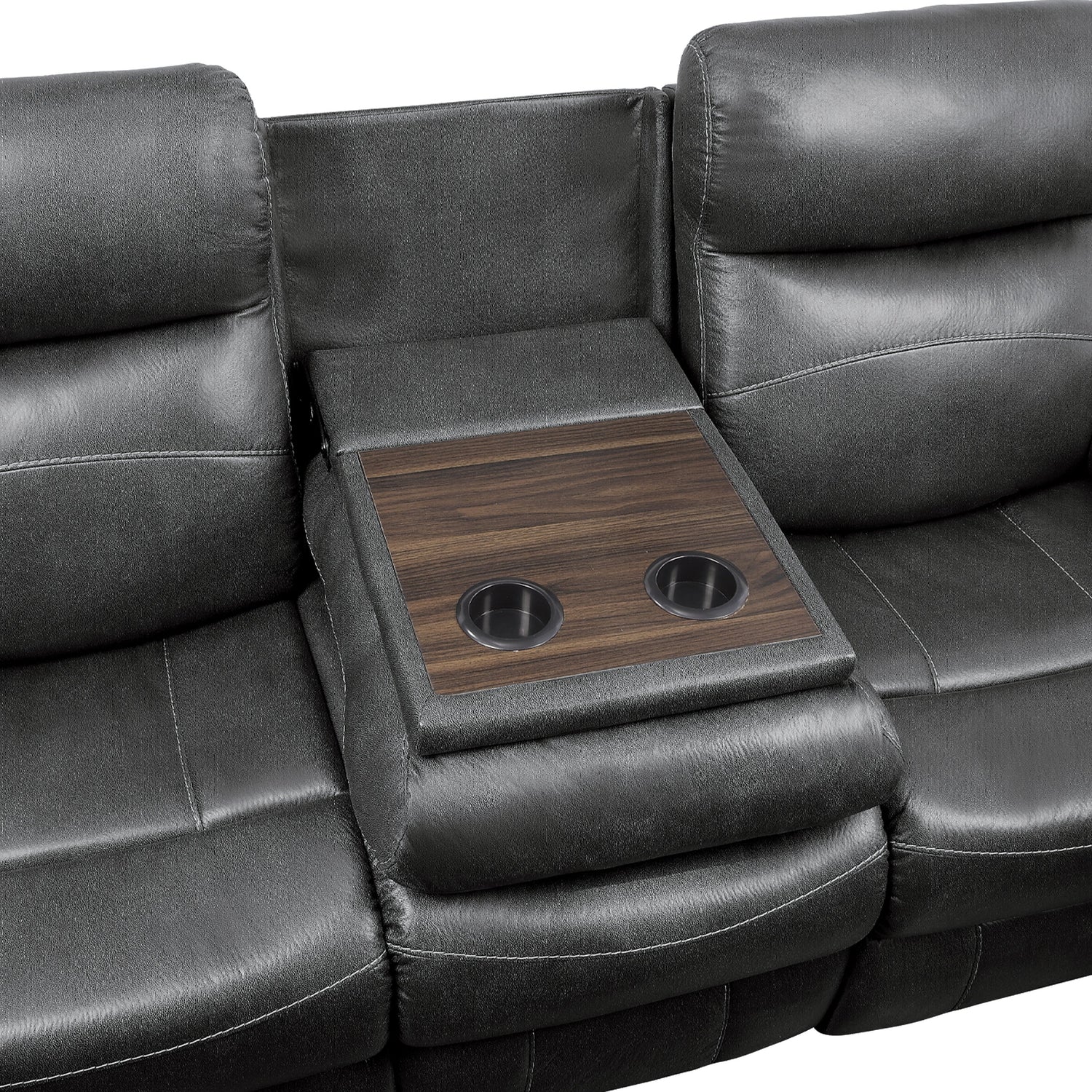 Designed to make your downtime as relaxing as possible, the Yerba Collection will be a welcome addition to your home. Dark gray polished microfiber fabric covers the plush seating of this motion sofa. Function amenities include the unique drop down back center console and dual reclining ends of the sofa. Providing additional function is the extended reclining mechanism installed on sofa that allows for further extension than the average recliner.