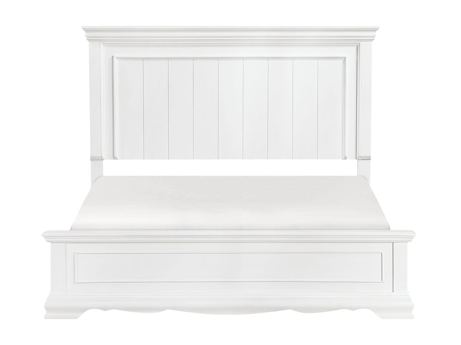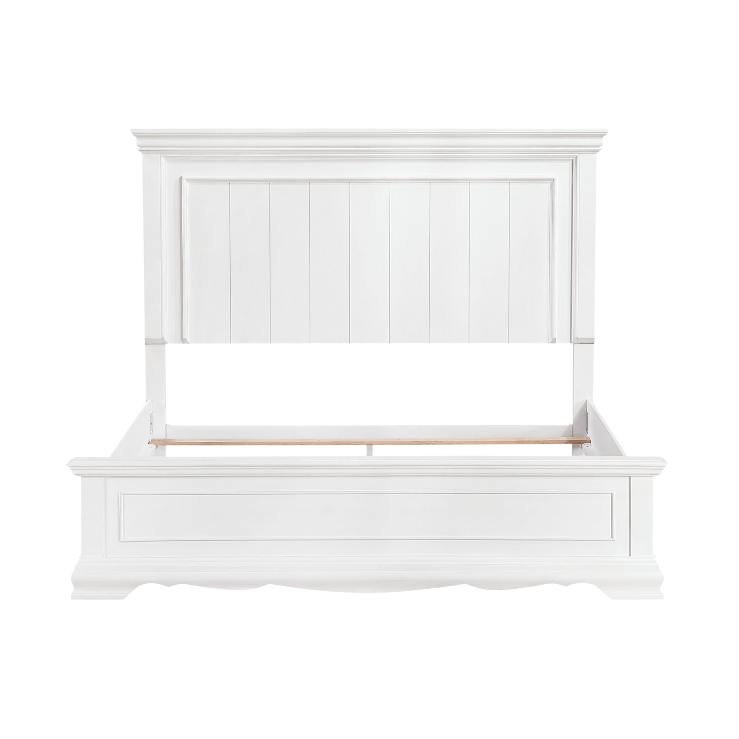 Infuse your master bedroom with timeless elegance and classic charm with this Eastern King Size White Panel Bed Frame. Expertly crafted from a blend of durable wood and engineered wood, this bed boasts a crisp white finish that brightens any space and effortlessly complements a variety of decor styles, from farmhouse to traditional. The stately headboard and elegant footboard, both featuring traditional panel details, create a sophisticated focal point, inviting you to relax in a sanctuary of comfort and style. This bed frame includes the headboard, footboard, and rails, providing a robust foundation that requires a box spring or foundation for optimal mattress support.