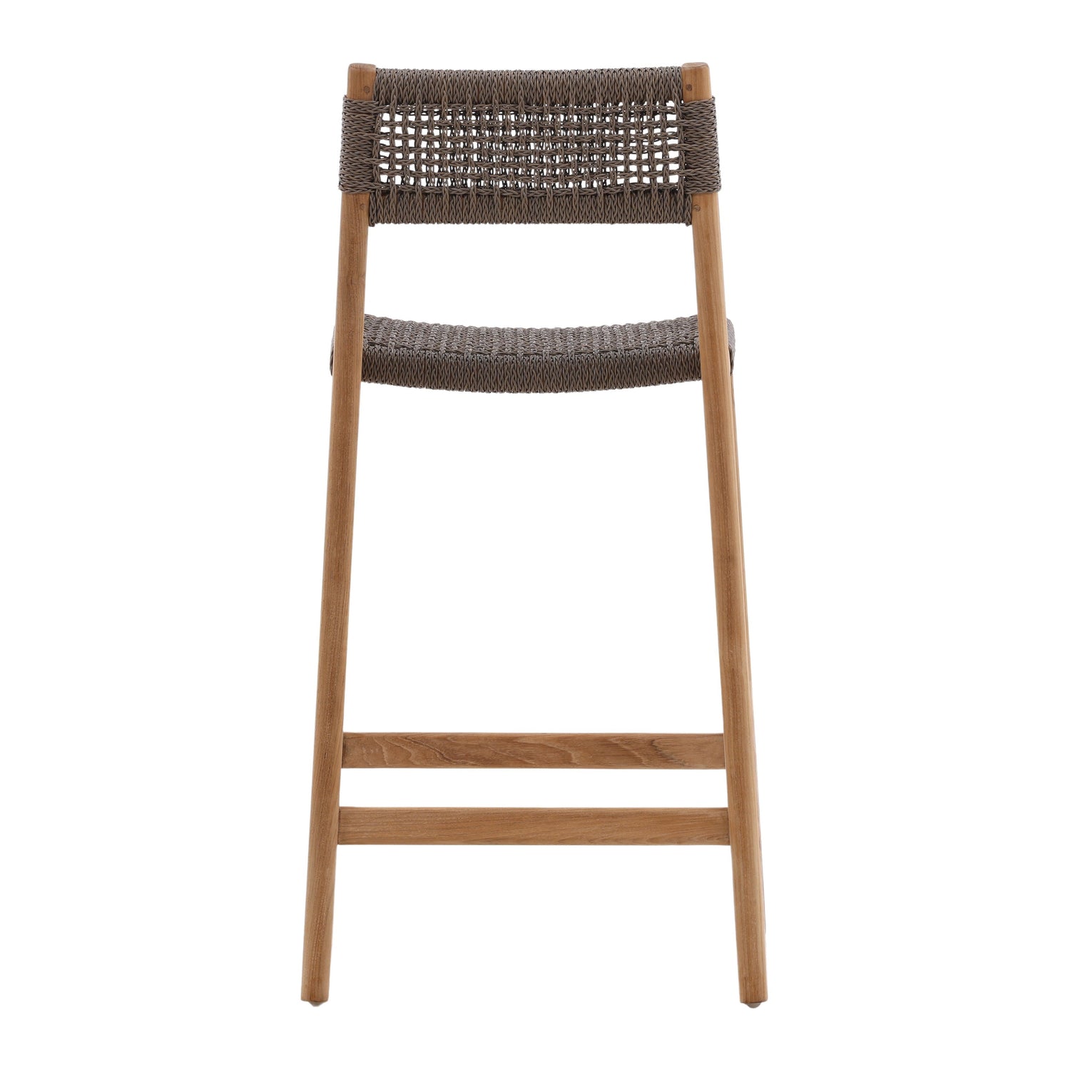 The Ysidro Outdoor Counter Stool combines braided synthetic wicker with a sturdy teak wood frame for a stylish and durable design. Finished in a sophisticated grey and natural tone, it offers both comfort and resilience for outdoor settings. Perfect for adding a touch of elegance to any patio or outdoor bar area.