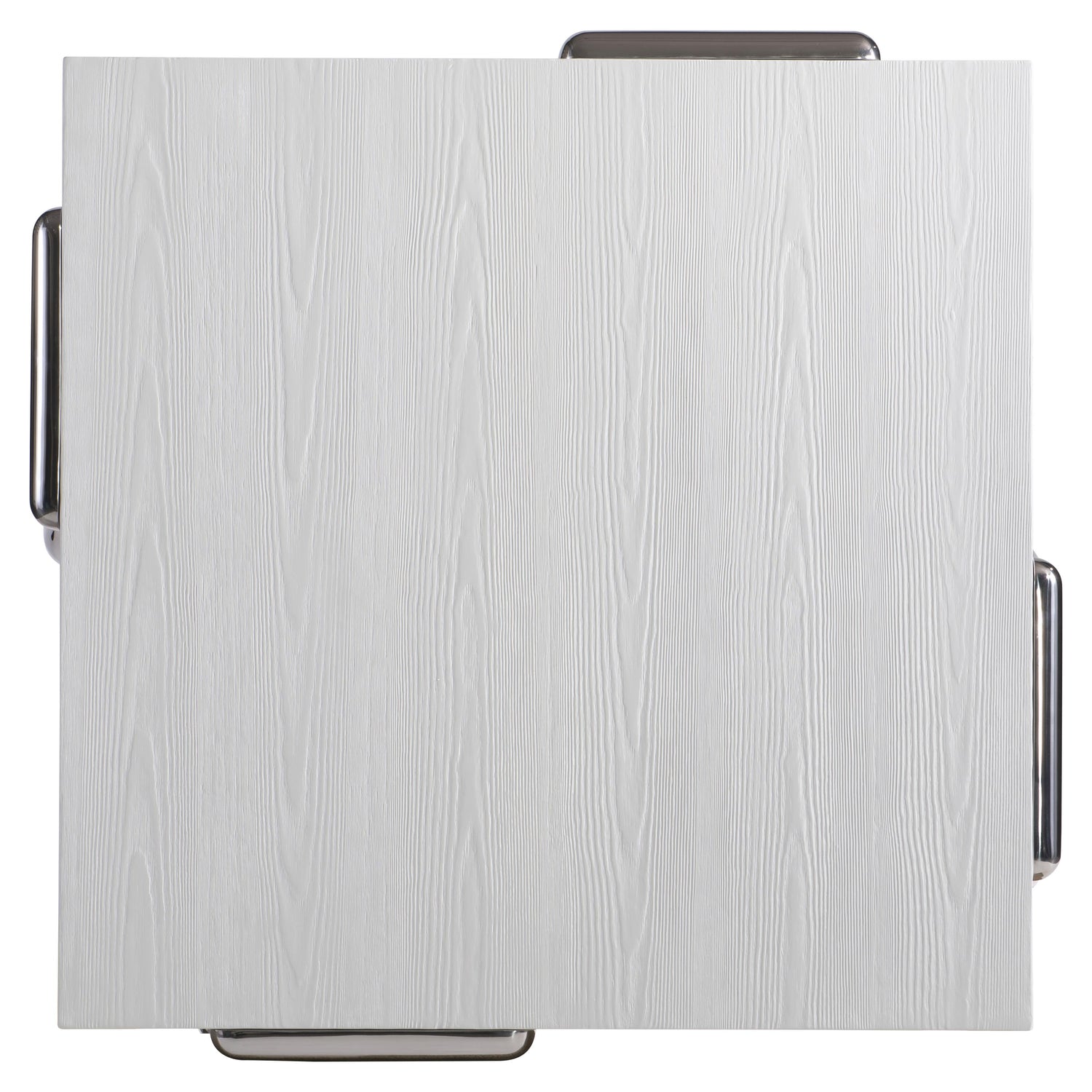 - Azucar white finish on pine veneered top and bottom shelf surface